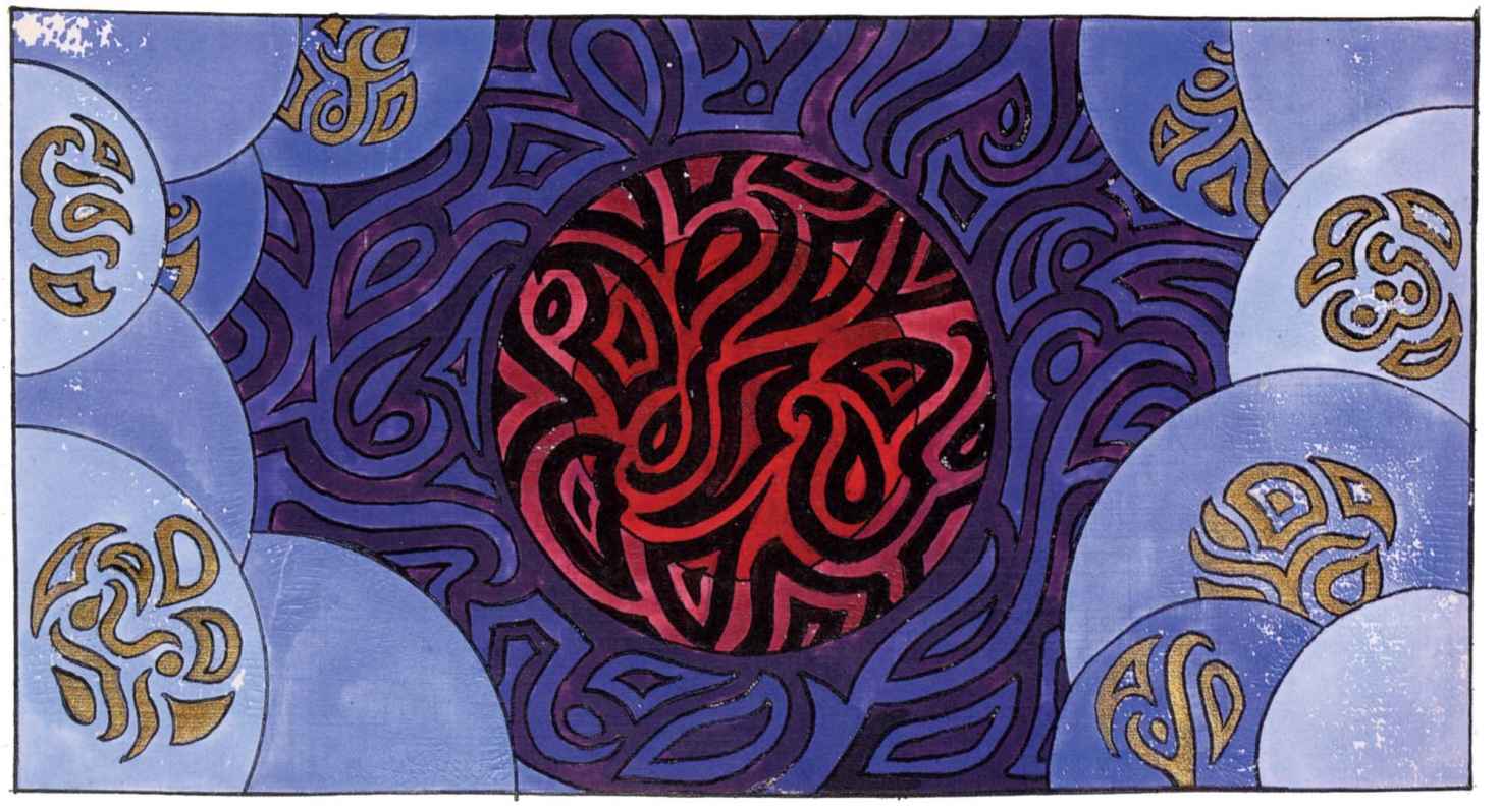 [11] 題字:“完成於1922年11月25日。火從穆斯皮利(Muspilli)中冒出來,竄到生命之樹上。一個循環已經完成,但這是在世界之蛋中的循環。一個奇怪的神,無名的孤獨之神,在蛋中孵化。煙和灰產生新的生物。”在挪威神話中,穆斯皮利(或穆斯貝爾海姆Muspelheim)是火神所在地。