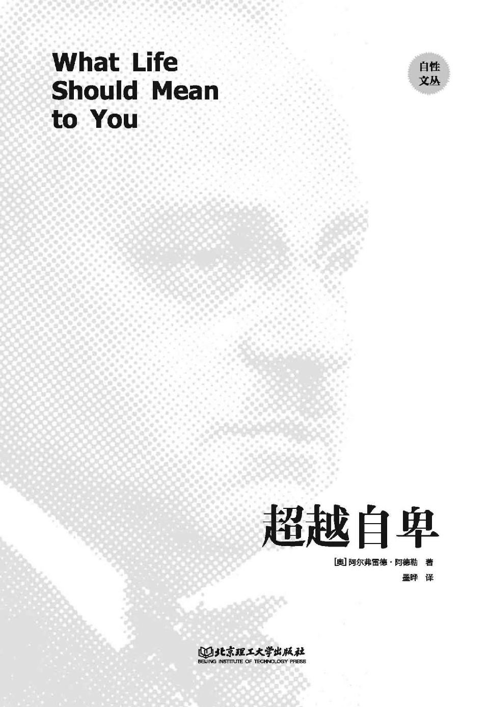 如果我們問一個人:“生活的意義是什麼?”他也許無法回答。大多數人也都不會費心去思考這個問題或者試圖尋找答案。的確,這個問題的由來和人類的歷史一樣久遠,但是在我們的時代,仍有年輕人或者老年人會問:“活著是為了什麼?生活的意義是什麼?”然而我們可以斷定,他們僅僅是在遭受挫折後才會考慮這些問題。假如一切都一帆風順,假如他們沒有經歷嚴峻的考驗,就不會有人提及這些問題。但是,每個人在行動中都會不可避免地遇到並要回答這些問題。如果我們拋開一個人的語言,只觀察其舉止,就會發現,他有自己的“生活的意義”,他的觀點、態度、動作、表情、修養、抱負、習慣和個性特徵等都與這個意義相符。他的行為舉止彷彿都是由某種人生觀指引的。他的所有行為都隱含著對世界和自身的看法。他認定:“我是這樣的,世界是那樣的。”這是他賦予自己和生活的意義。
