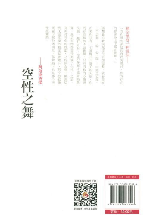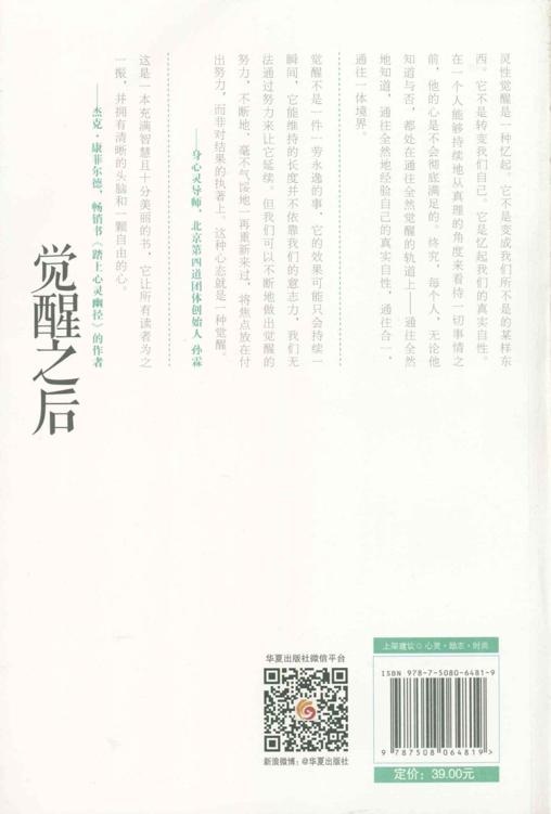 到目前為止,我們都給予了傢俱太多的關注,而忽略了整個空間是足夠寬敞的。到目前為止,我們總是隨時隨地“犧牲”在經驗裡,而忘了發現那個讓一切經驗得以呈現的、先於經驗並且能夠意識到不同經驗的覺知之心。阿迪亞香提說:“真正的修行就是安住於覺知的空間,在其中,萬事萬物得以被揭示、被了知、被經驗。如此一來,它就可以放下它自己。”這本書正是告訴你如何發現足夠的空間以及其中的一切,如何單純地安住在純粹覺知本身——通過不操控、通過放開注意力的焦點、通過隨順念頭與感受的自然呈現與流動,讓心緒的“傢俱”不再變成是你的敵人。