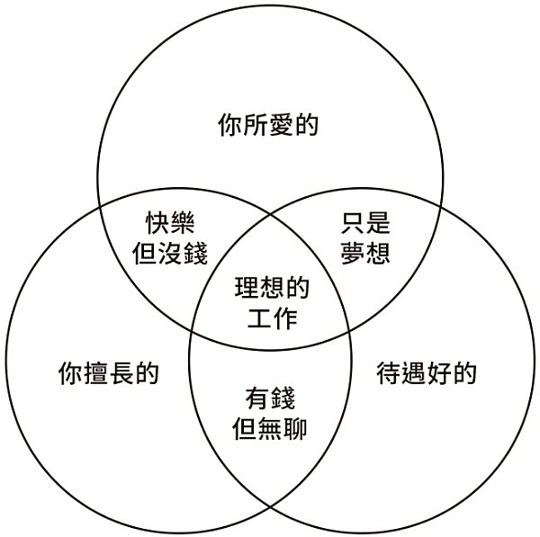 前者透過職業性向測驗和天時地利人和可以達成,後者則有賴正確的方向和努力才可能實現。只是我們也都知道,找到適合自己的工作有時比找到另一半還困難。職缺出現的時機、公司中的政治算計、人脈上的角力,我們能掌握的部分還真不多。