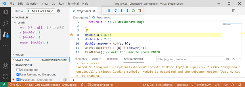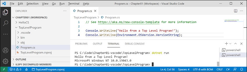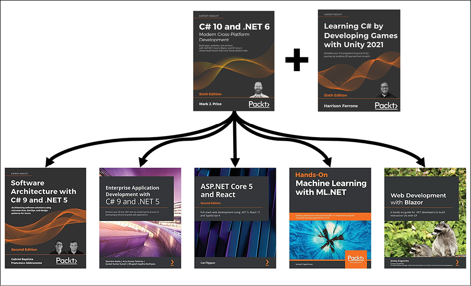 For that reason, I believe the best method for learning the C# and .NET topics in Chapters 1 to 12 is to build console applications. Then, in Chapter 13 to 19 onward, you will build websites, services, and graphical desktop and mobile apps.