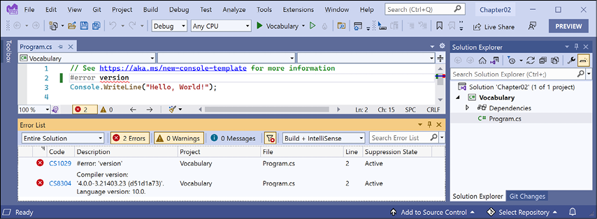 If you already have experience with older versions of the C# language, then in the first section of Chapter 2, Speaking C#, you can review tables of the new language features and jump straight to them.
