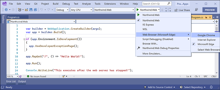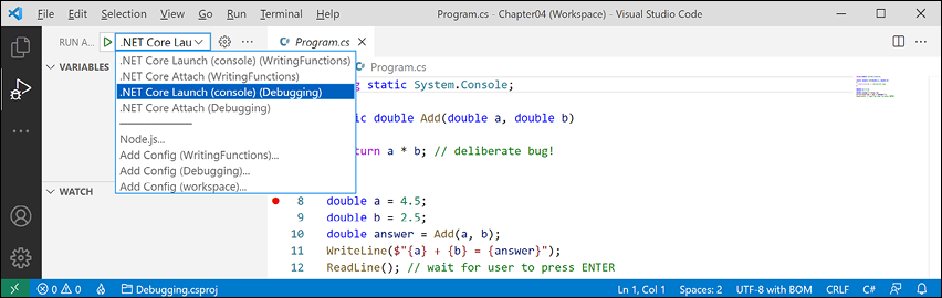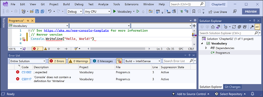 Having said that, you can make the argument that the best tool is the one you are already familiar with or that you or your team will use as your daily development tool. For that reason, I want you to be free to choose any C# code editor or IDE to complete the coding tasks in this book, including Visual Studio Code, Visual Studio for Windows, Visual Studio for Mac, or even JetBrains Rider.