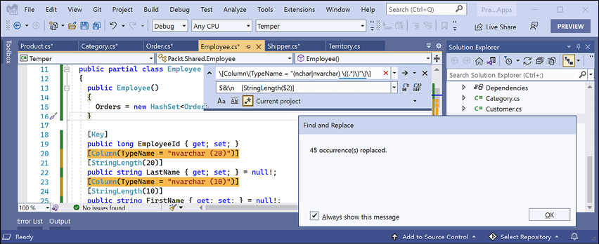 Chapter 13, Introducing Practical Applications of C# and .NET, introduces you to the types of cross-platform applications that can be built using C# and .NET. You will also build an EF Core model to represent the Northwind database that will be used throughout the rest of the chapters in the book.