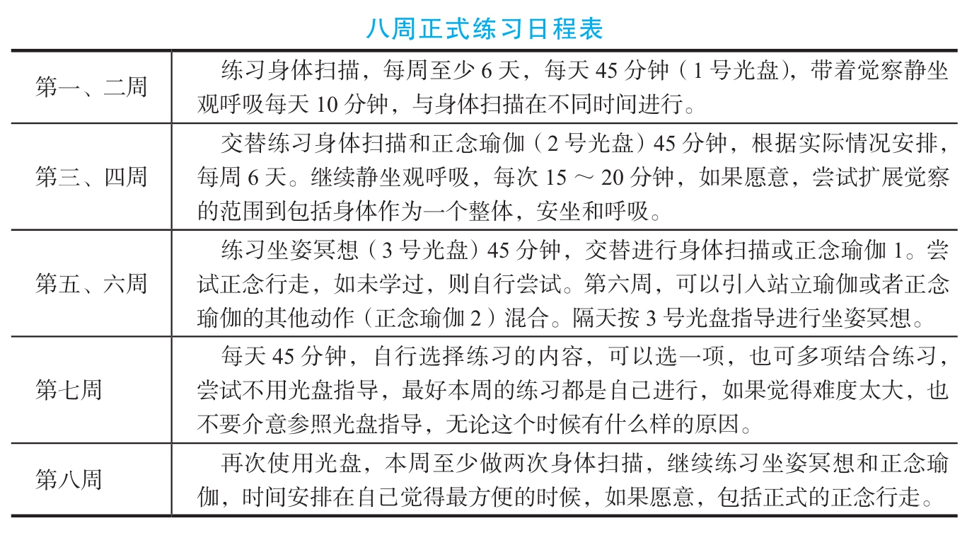 從這種意義上來說,正念,特別是本書所描述的正念減壓課程,是一種對你自己的身體、頭腦、心靈和生活變得更加熟悉的邀請——經由一種嶄新的、更加系統、更具愛意的方式去加以關注,並由此發現你自己生活中未曾注意到的或出於某些原因,至今都遭到忽視的重要方面。