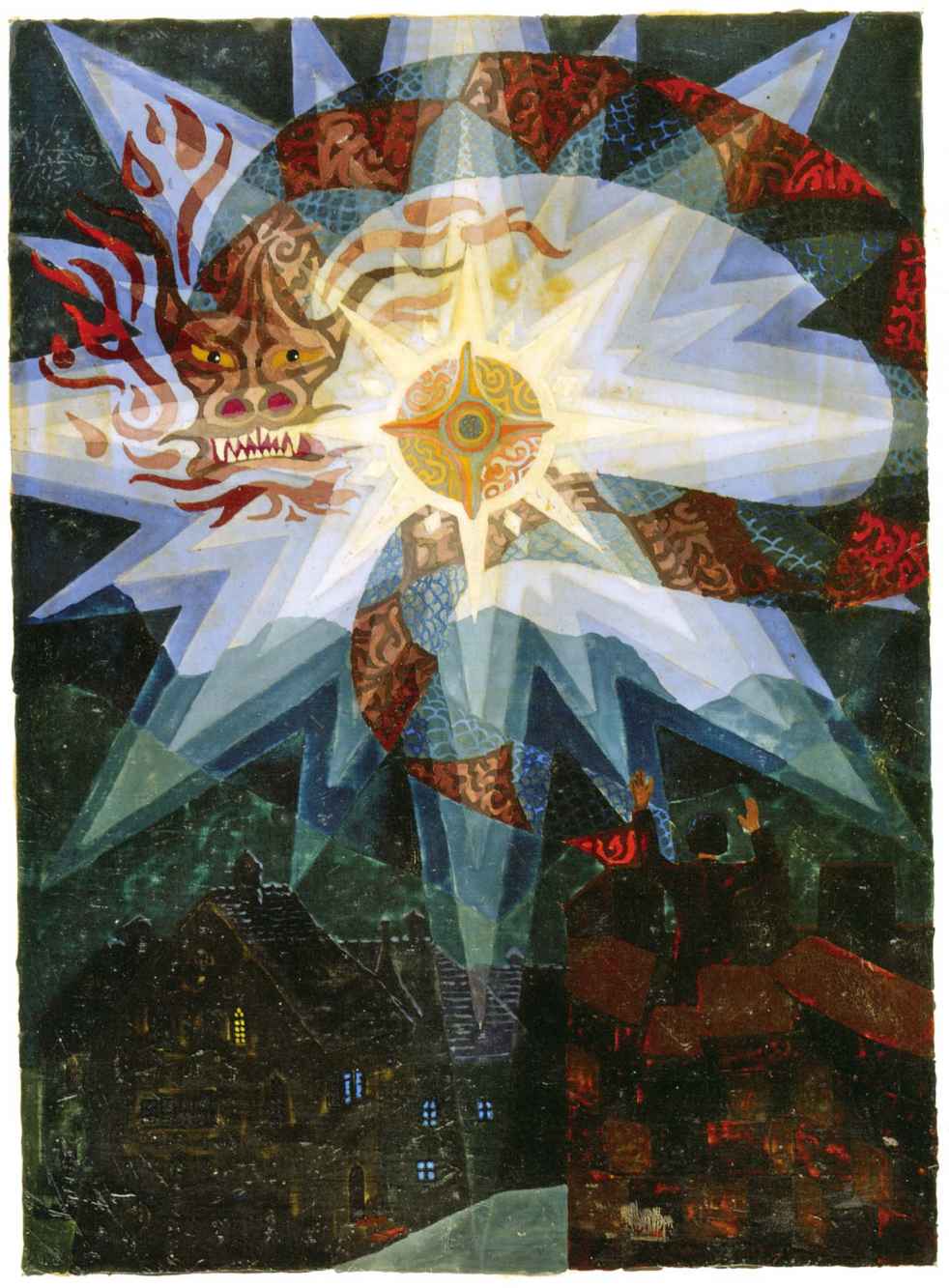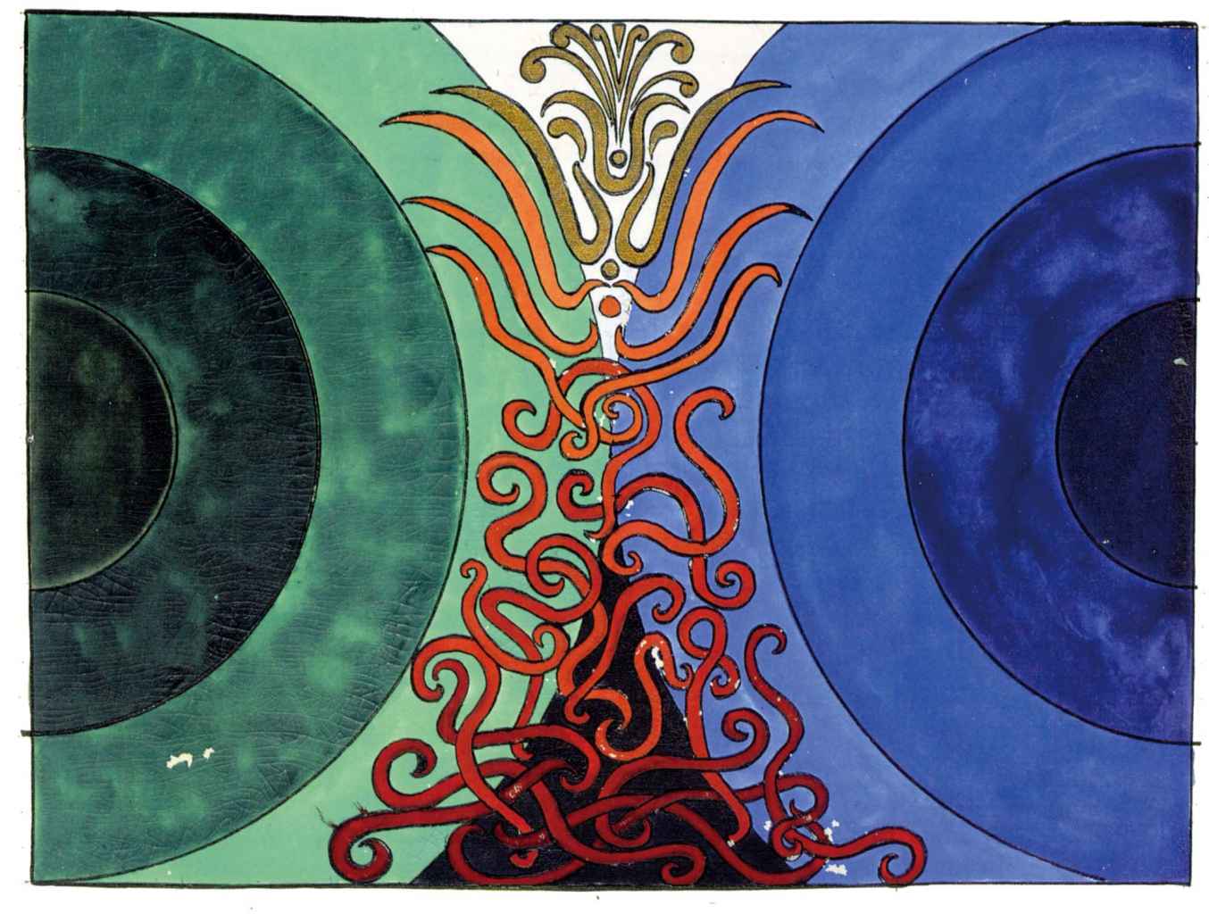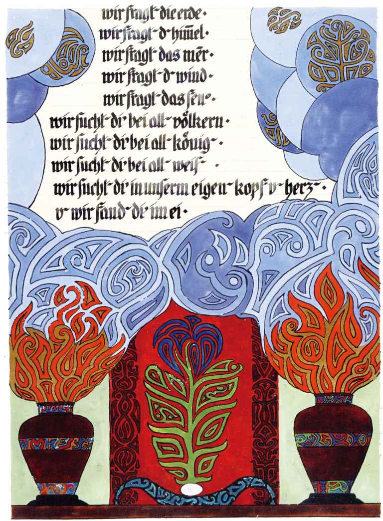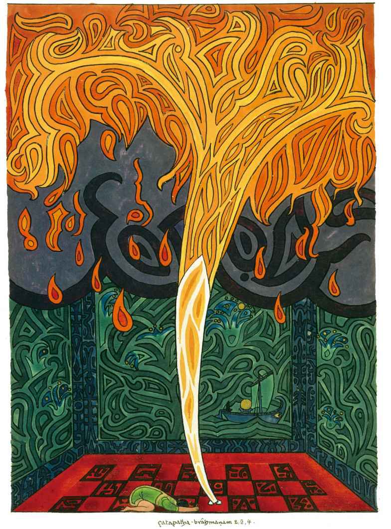 因此,意象以憂鬱的感覺結束,但它與被蛇包圍著的高高但靜靜地燃燒的火焰相對立。這種觀點表示奉獻和蛇代表的魔法衝動成對出現,因此便出現一個與疑惑和恐懼的不安感相對的有效對應部分,就像有人在說:“是的,你的自我充滿不安和懷疑,但持續奉獻的火焰在你心中燃燒的更加猛烈,你命運的衝動變得更加強大。”