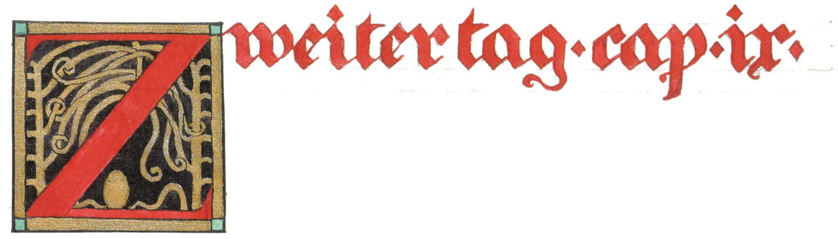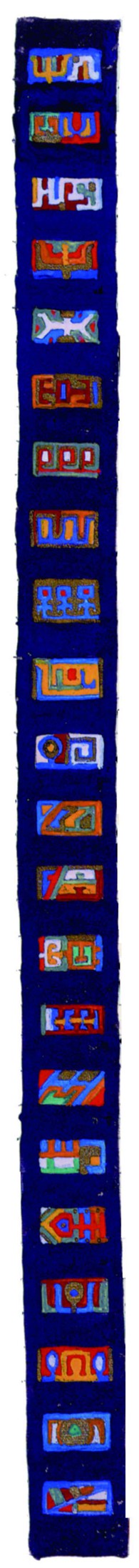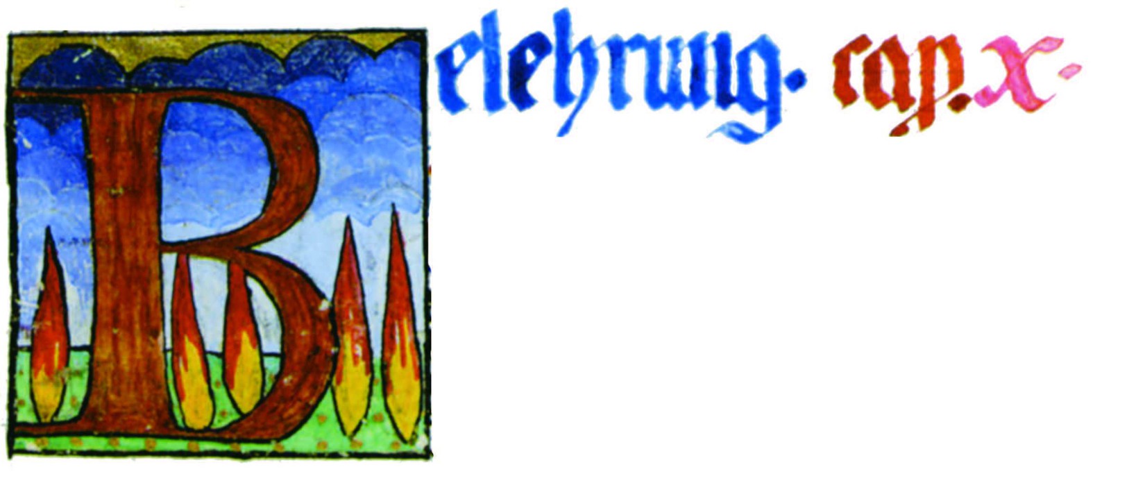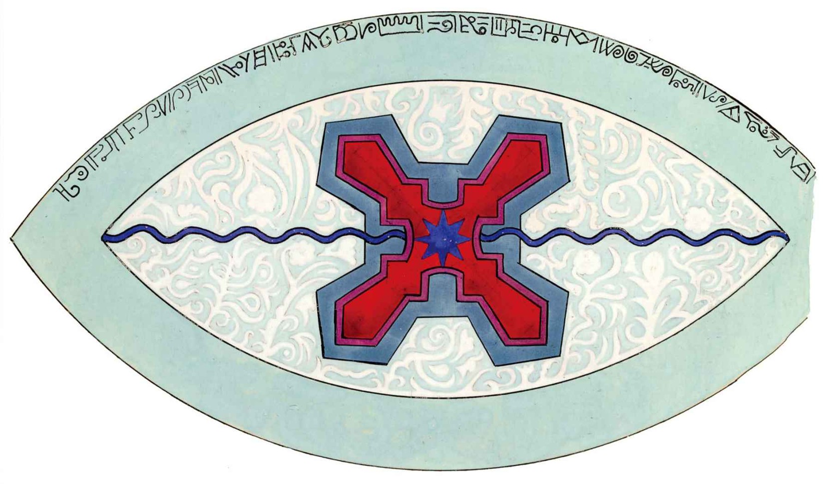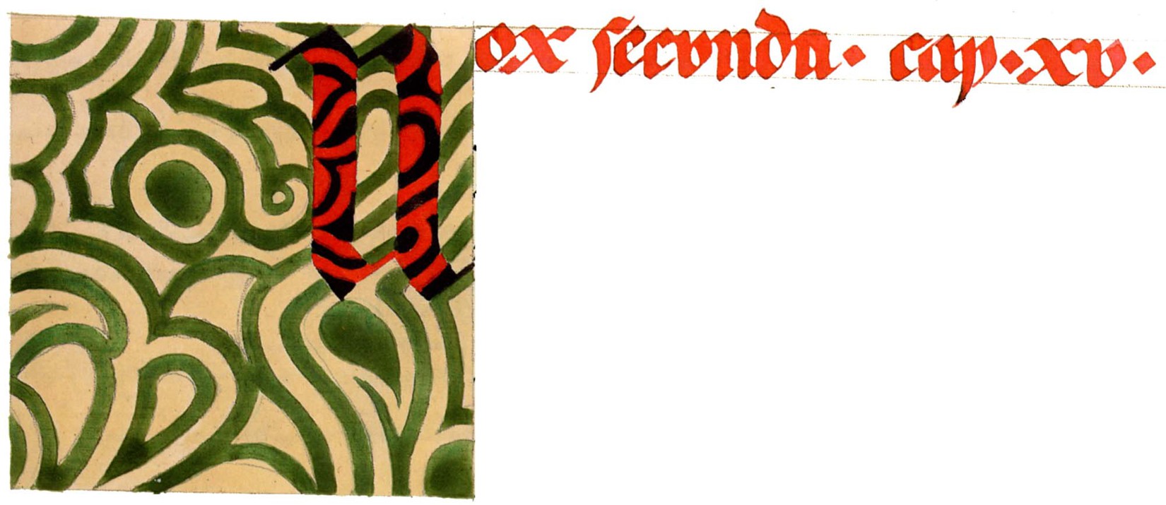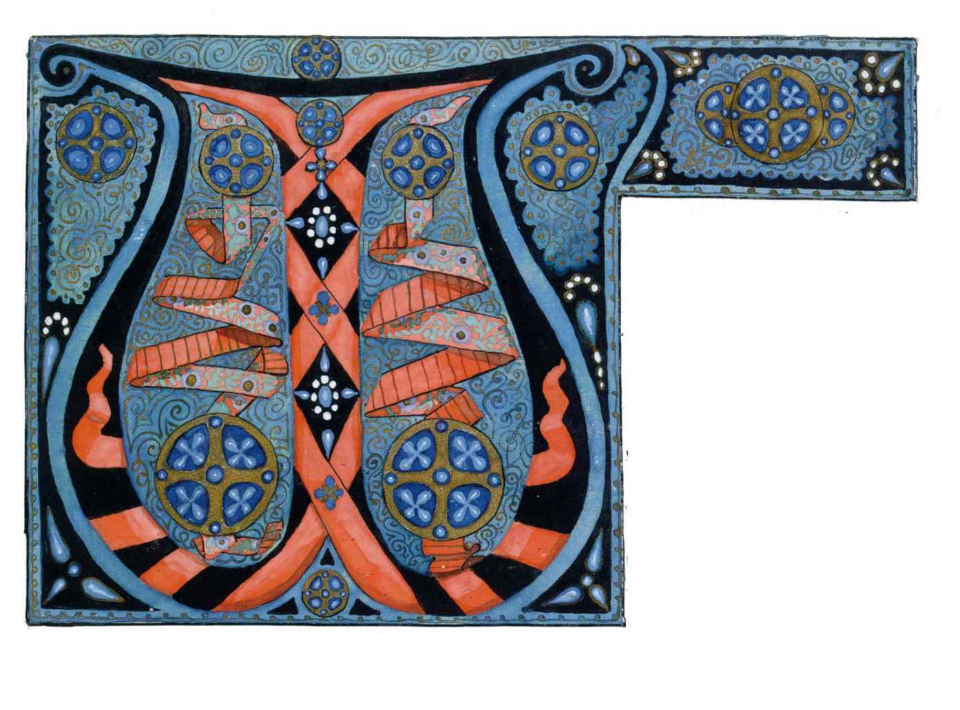 花體字文本源自一個巴比倫的創世神話,出自雨果·格雷斯曼所編的《近東古代的文本與圖片和舊約聖經》,第1卷,(圖賓根:J.莫爾出版社,1909),4頁f,榮格在1912年的《力比多的轉化與象徵》中引用過這個神話(《榮格全集B》,§383)。神話的內容是:“母神胡貝爾創造一切/在她懷著長著尖牙的巨蛇時提供無可抵擋的武器/勢不可當。她的身體充滿血液,而非毒液/身上覆蓋著正在繁殖的巨大蠑螈。她使它們發出可怕的光芒/並令它們升高。只要人看到它們,必將驚恐憔悴/它們的身體必將豎起,而沒有飛起來。