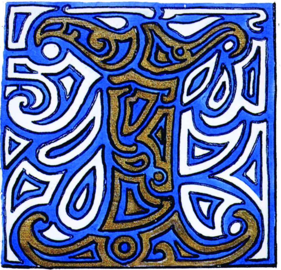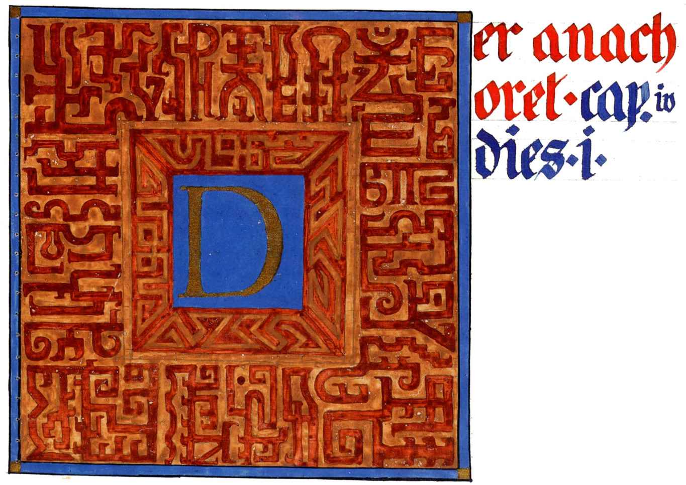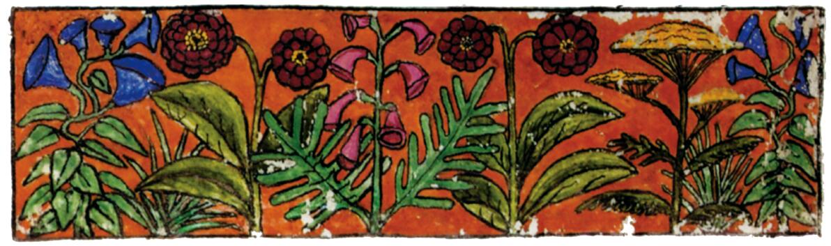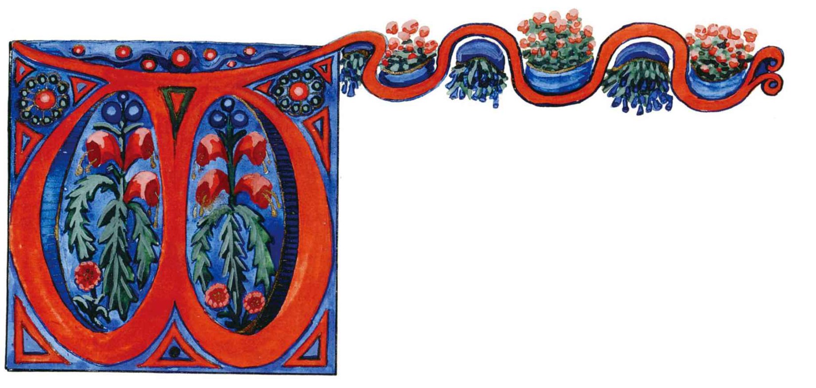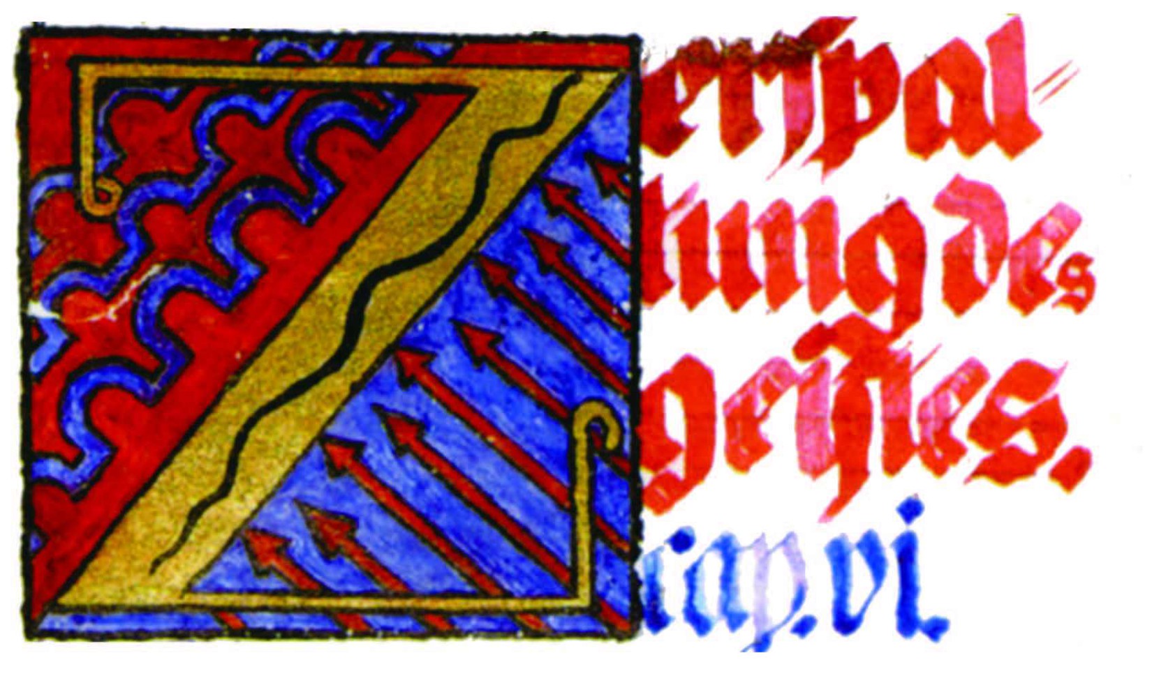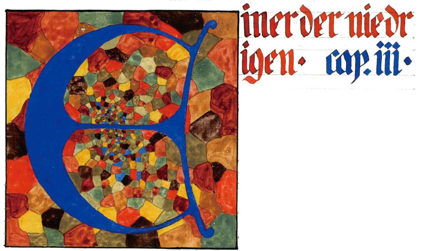 花體字文本源自一個巴比倫的創世神話,出自雨果·格雷斯曼所編的《近東古代的文本與圖片和舊約聖經》,第1卷,(圖賓根:J.莫爾出版社,1909),4頁f,榮格在1912年的《力比多的轉化與象徵》中引用過這個神話(《榮格全集B》,§383)。神話的內容是:“母神胡貝爾創造一切/在她懷著長著尖牙的巨蛇時提供無可抵擋的武器/勢不可當。她的身體充滿血液,而非毒液/身上覆蓋著正在繁殖的巨大蠑螈。她使它們發出可怕的光芒/並令它們升高。只要人看到它們,必將驚恐憔悴/它們的身體必將豎起,而沒有飛起來。