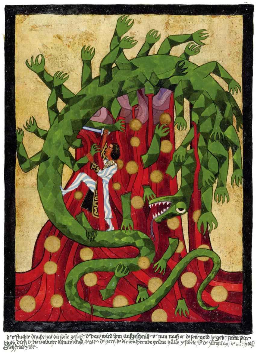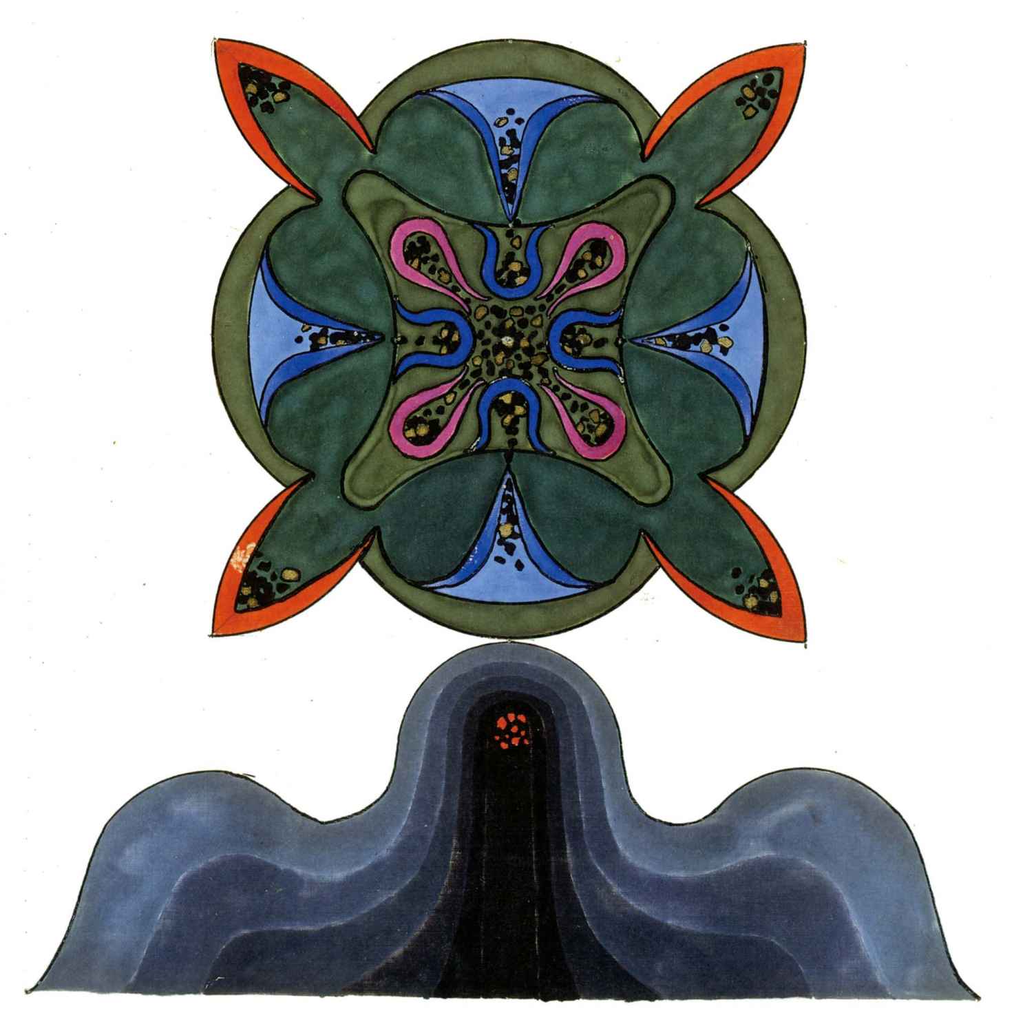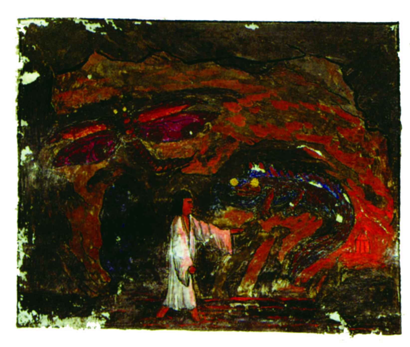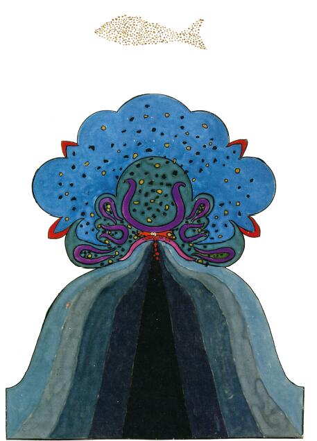 場景設置是在黑暗的大地深處,很明顯隱喻象徵的是明亮的意識空間範圍或精神視野範圍之下的內在深度。下沉到這樣的深度類似於把精神的目光從外在的事物上轉移到對內在黑暗深度的注視。目光注視黑暗在很大程度上能夠賦予之前黑暗背景生命,因為目光注視黑暗的發生不帶有意識的期待,被賦予生命的黑暗背景有機會使自己的內容出現,而不受到意識性假設的幹擾。