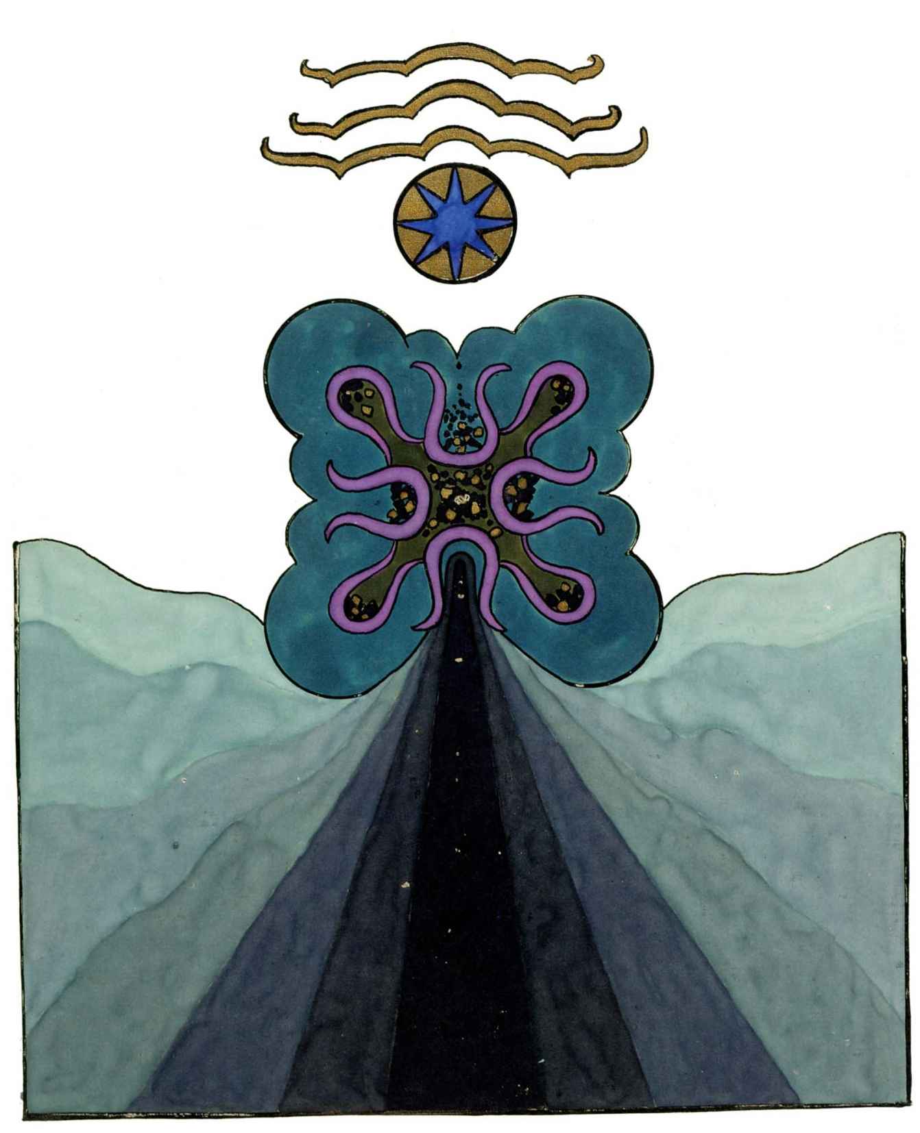 行動的場景和第一個意象發生地相同。火山口的典故加強抵達地球深處內部的巨洞的感覺,這個深度並不活躍,但會猛烈地噴出各種物質。