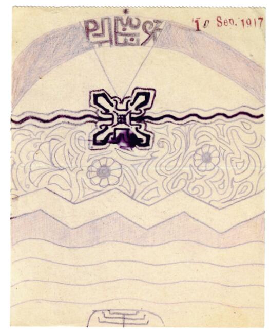 在夢書的1917年4月17日條目中,榮格寫道:“從此以後,一直頻繁進行清空意識的練習。” [69] 他的自我實驗有明確的目的——使心靈的內容自發地顯現。榮格回憶說在意識的閾限之下,一切都是有生命有活力的。在那個時候,他好像聽到了什麼東西。後來,他意識到那是他在對自己小聲說話。 [70]
