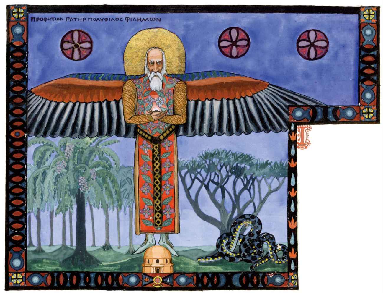 無論邏各斯統治什麼地方,都會有秩序,但非常持久。天堂的隱喻是那裡沒有鬥爭,因此沒有發展適合那裡。在這種情況下,被壓抑的活動便會退化,失去自己的價值。這是對聖人的謀殺,謀殺之所以會發生,是因為邏各斯,像希律王一樣,因為自己的弱點,不能保護聖人,因為他唯一能做的就是保住自己,從而導致愛洛斯的墮落,只有違抗統治原則才能夠走出這種沒有得到發展的堅持狀態。天堂的故事不斷重複,因此蛇纏在樹上,因為亞當應當受到誘惑。
