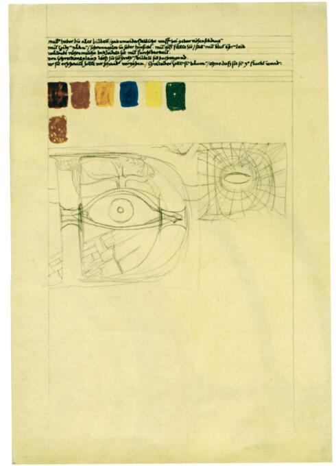 《第二卷》第一頁的草圖(見186頁)。(38.7釐米×27.3釐米)