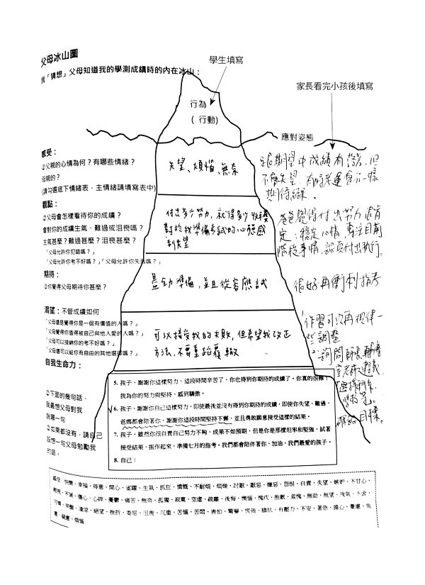 終於,進度不是問題,成績名列前茅,其他人異樣的眼光逐漸開始轉變……但是我有時求好心切,渴望著讓學生進步,急著想要解決學生的問題。沒有好好傾聽學生的聲音,造成師生關係的緊張,當時內心感受到了很大的煎熬。