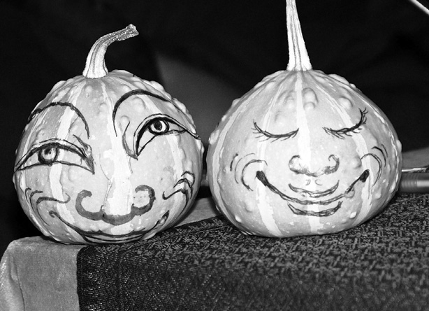 梭巴仁波切自畫在南瓜臉上的笑臉。每年10月美國的南瓜節兒童們都有南瓜雕塑比賽,梭巴仁波切自畫在南瓜的笑臉別有風味。 |