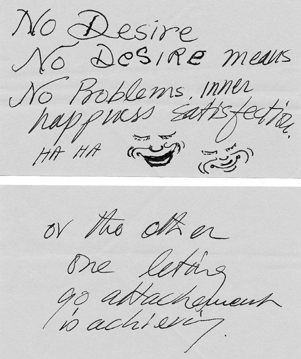 當我們從不滿足的貪欲心中解脫時,生命的祥和、快樂就會降臨。當我們從不快樂的貪欲心中解脫或獨立出來時,滿足就會來臨。