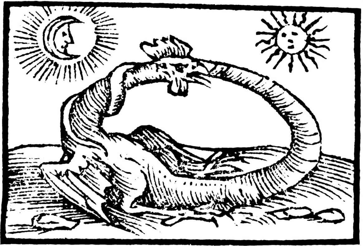 圖6 咬尾蛇是伊雍(Aeon)的象徵。引自Horapollo,selecta hieroglyphica,190,p.5,裝飾圖案。