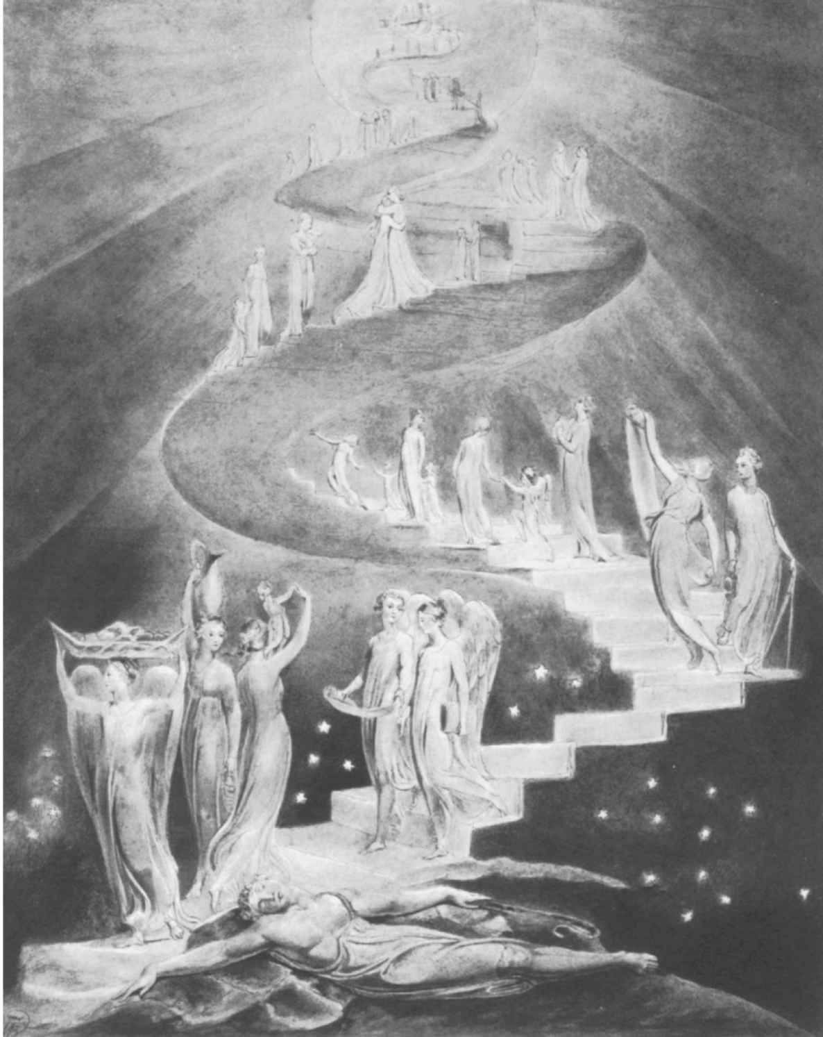 圖14 雅各的夢(威廉·布雷克的透明水彩畫)。引自Binyon,337,Plate79。