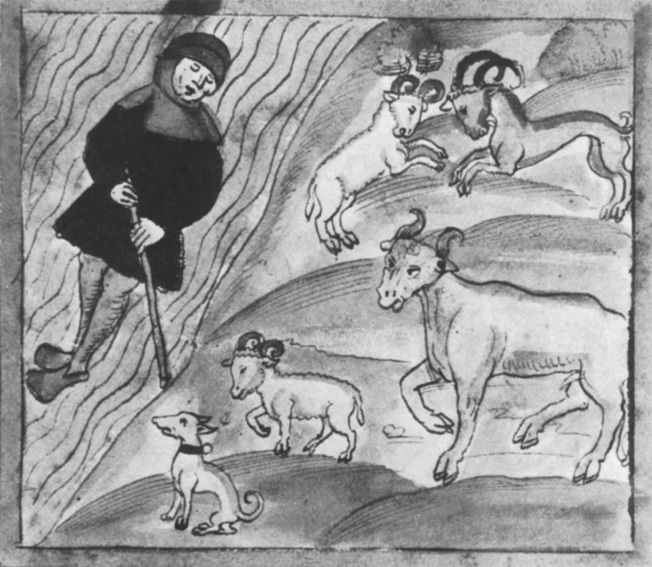圖17 作為白羊座和金牛座之牧羊人的藝術家(或赫爾墨斯),他象徵著青春期的衝動,藝術創作過程的開始。引自Aquinas,“De alchimia”(手稿,16世紀),20,ix,fol.86。