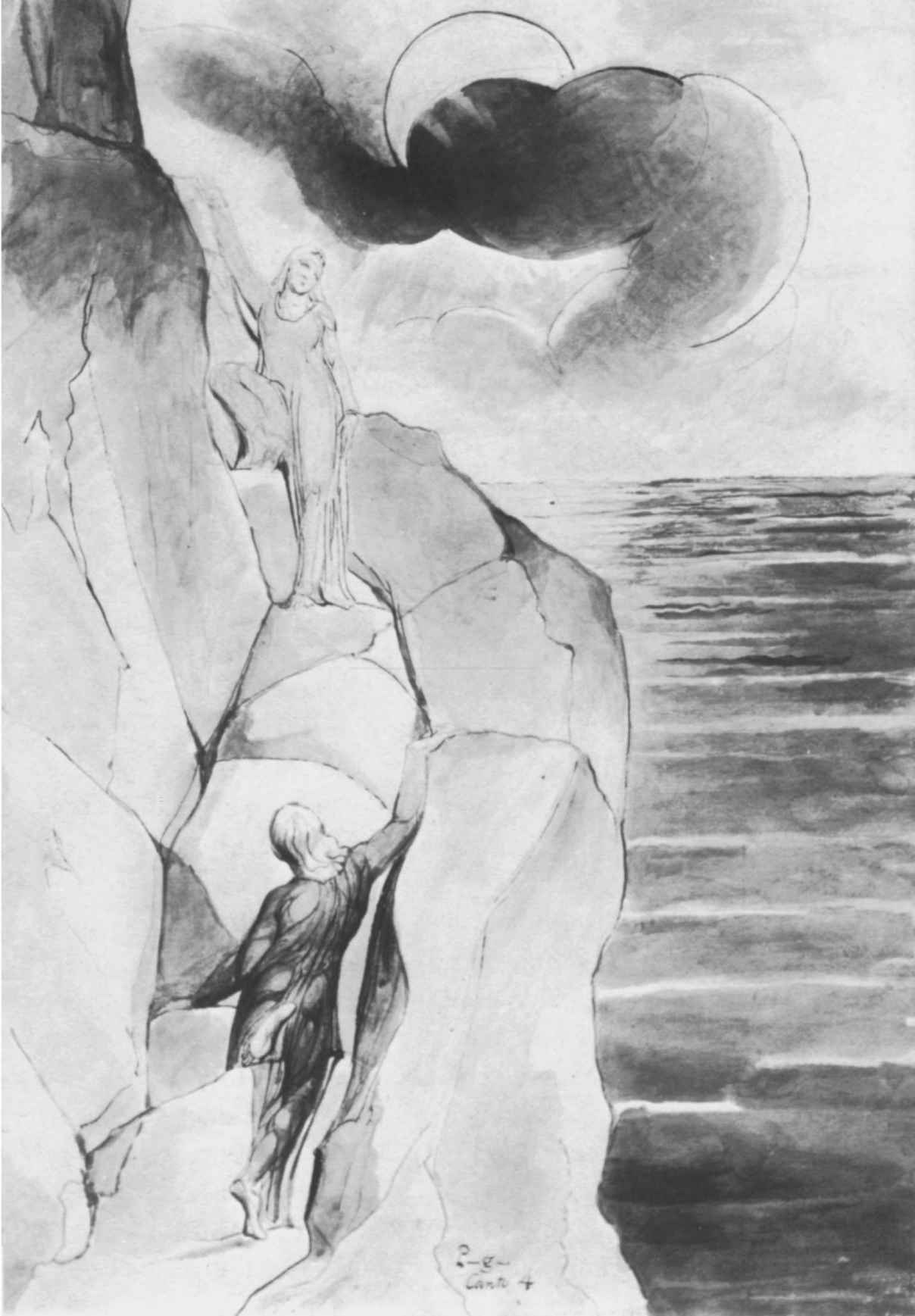 圖19 作為嚮導的靈魂,正在指示道路。威廉·布雷克為但丁的《神曲:煉獄篇》(Purgatorio)第四章製作的透明水彩畫,引自Binyon,337,Plate102。