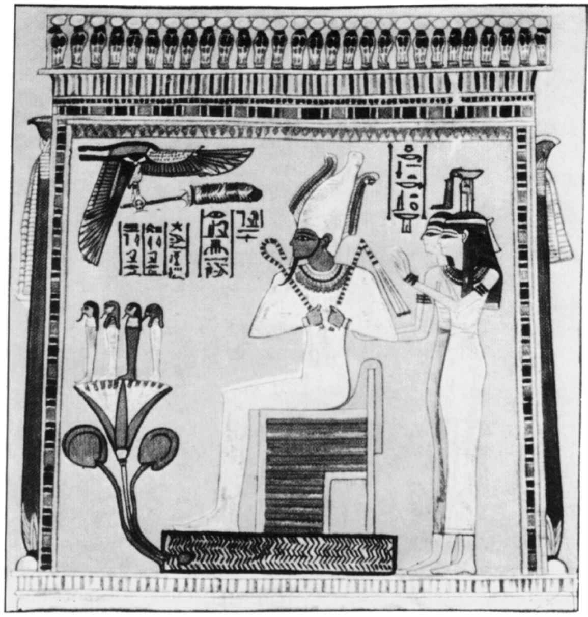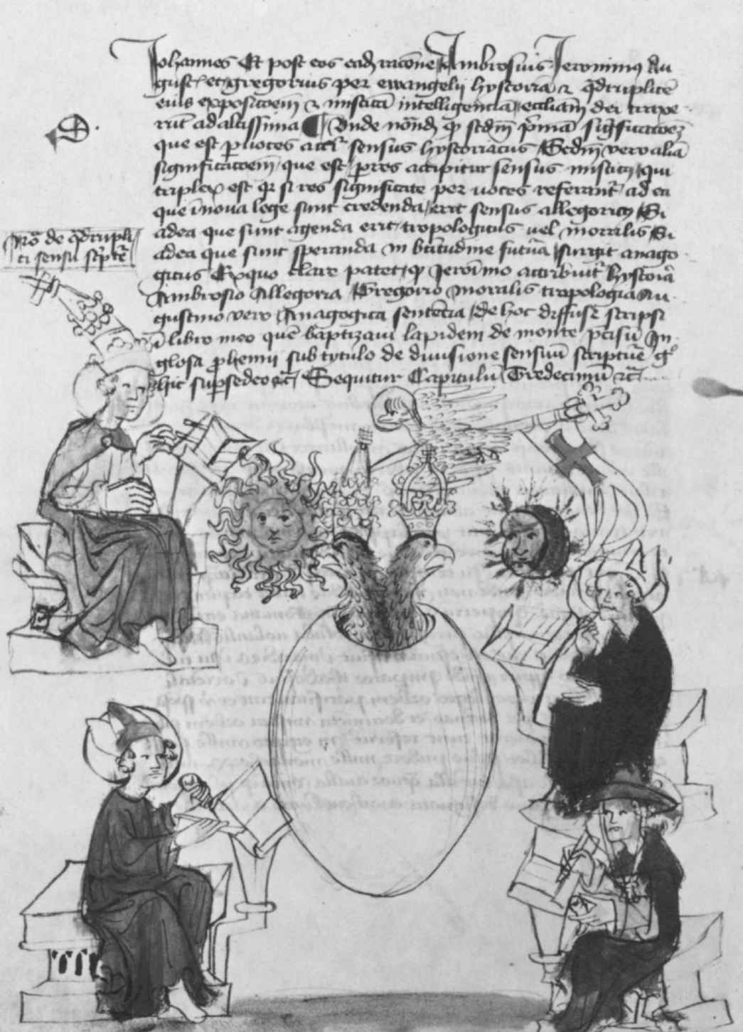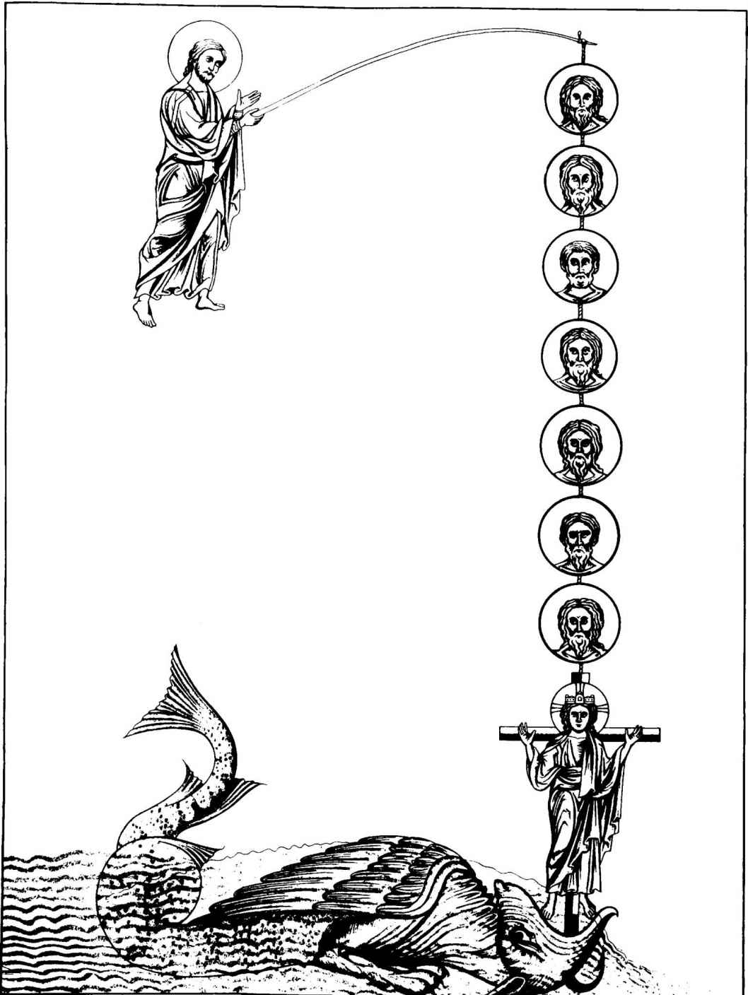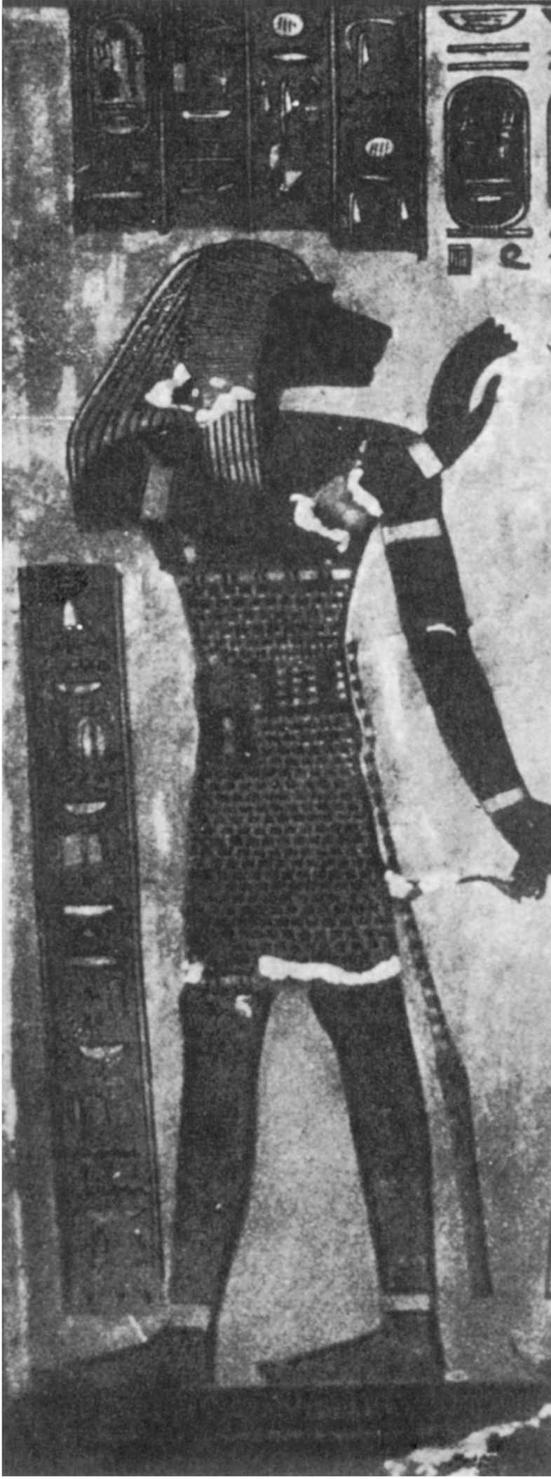 [222]參見來自埃及菲萊島的淺浮雕(Budge,347,I,p.3;Budge,345,plate5)。福音傳道者有時候會是三個長著動物頭,一個長著人頭。在一份公元7世紀的手稿中,確實記錄著福音傳道者戴著他們的動物頭,正如他們在那些羅馬石碑上的樣子。