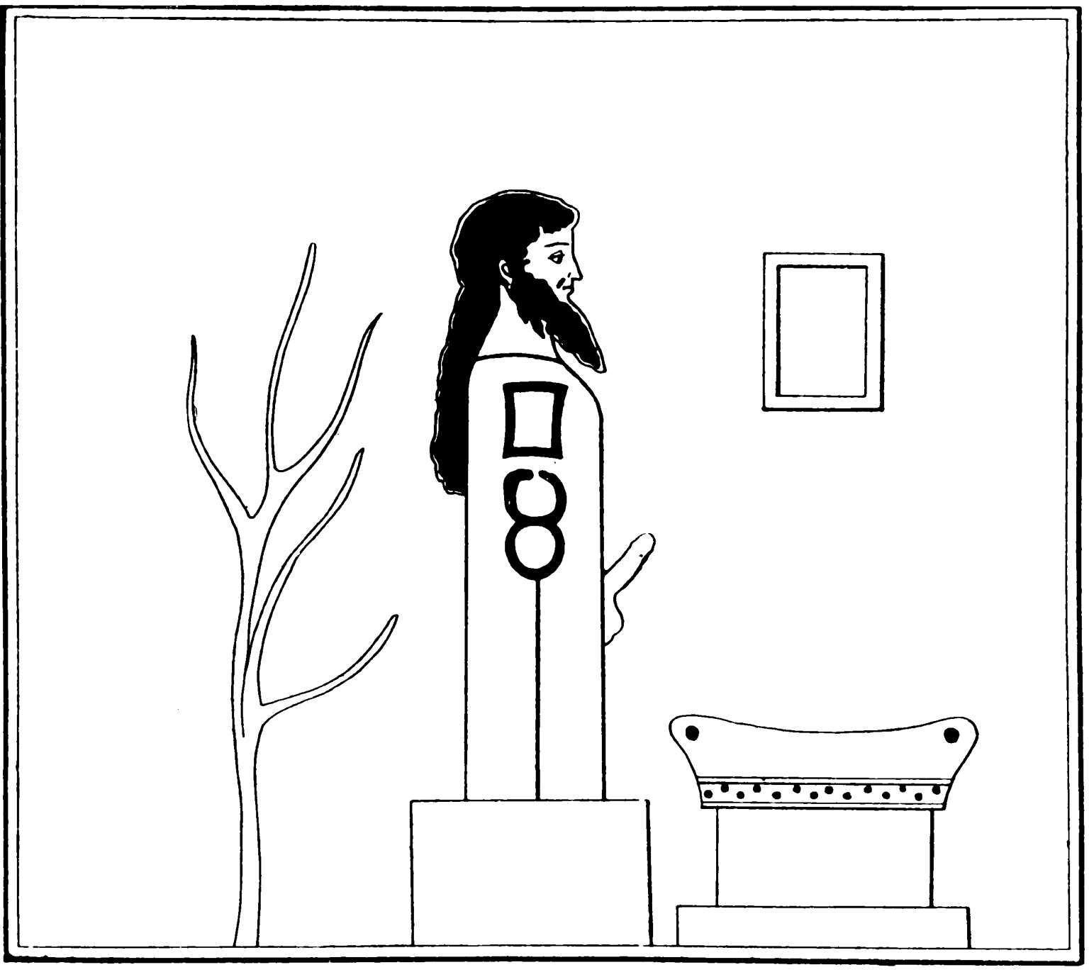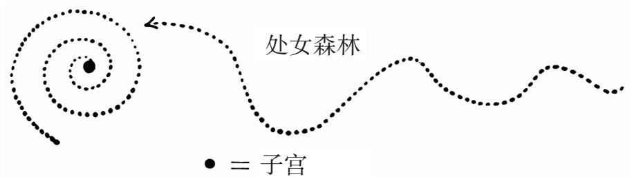 [198]子宮是中心,是賦予生命的器官(圖87)。那塊石頭就像聖盃一樣,其本身就是創造性的器皿,是長生不老藥。它被那個螺旋,即意味著間接接近的象徵所包圍。