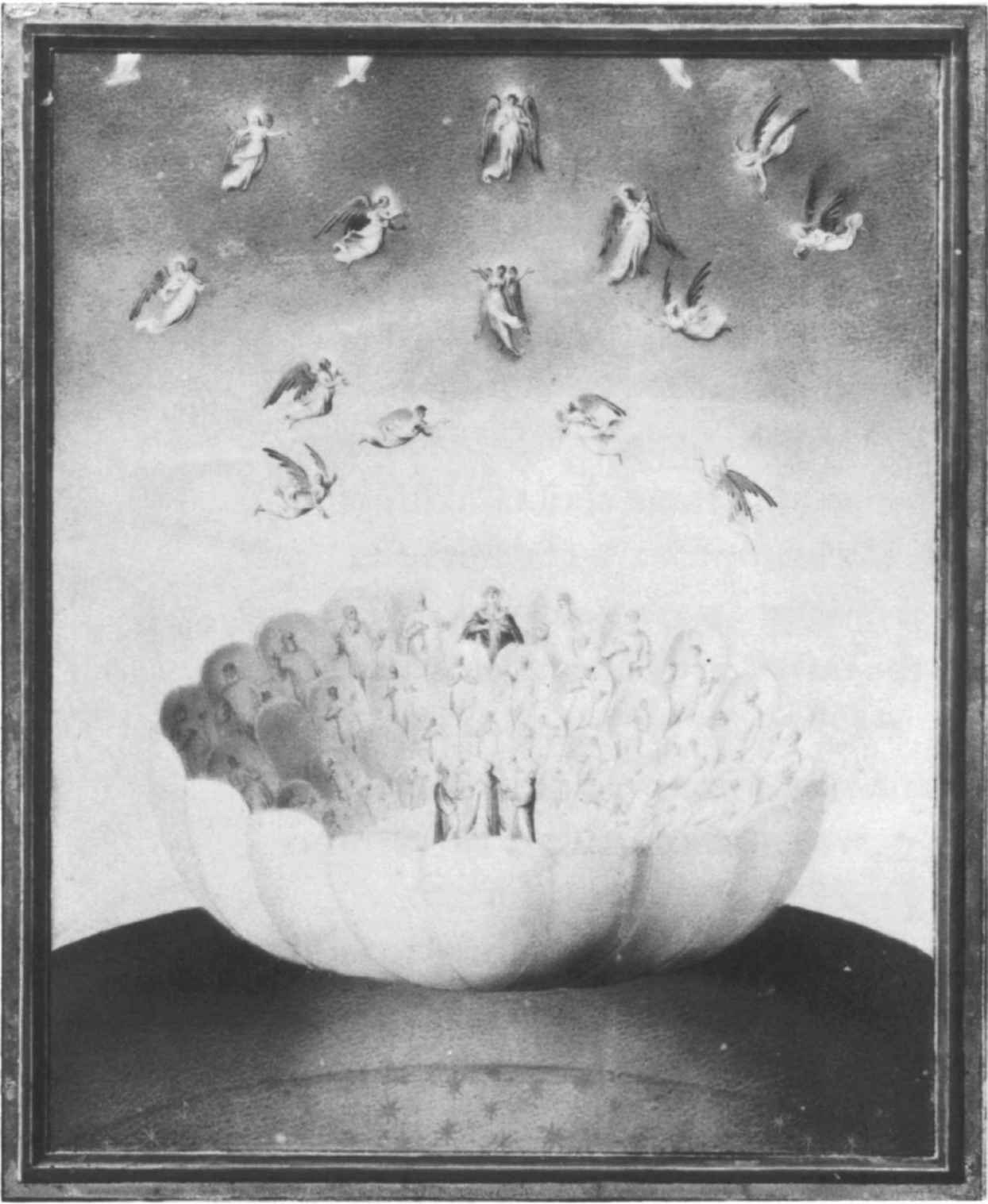 這裡的心理氣氛是被中世紀關於淫魔(succubi)的傳說激發起來的。這使我們想起了埃及的聖安東尼(St. Anthony)看到的幻象,福樓拜(381)對此做了非常博學的描述。幻想的成分是當一個人把想法大聲說出來時表現出來的東西。“首先我必須逃離”這句話是在表達一個結論,它的前一句話可能會表明其原因,即“為了……”(in order to)。大概會這樣說,“為了追隨無意識,即引誘人的女性形式”(圖9)。父親,即那個在宗教或一般生命哲學中表現出來的傳統精神的化身,正擋住他的路。他把夢者囚禁在意識心靈及其價值觀的世界中。傳統的男性世界,連同其唯智論和理性主義,正在成為一個障礙,由此我們必然得出結論認為,現在正向他趨近的無意識,是與意識心靈的傾向直接對立的,儘管有這種對立,但夢者已經傾向於朝向無意識。由於這個緣故,就不應該讓後者接受意識心靈的理性判斷;相反,它應該是一種自成一格的(sui generis)體驗。誠然,讓理智接受這一點並非易事,因為它至少包含著部分的,即便不是全部的,知性的犧牲(sacrificium intellectus)。再者,由此而引發的問題是現代人非常難以把握的;因為一開始他只能把無意識理解為意識心靈的一種非基本的和不真實的附屬物,而不是理解為有其自己法則的獨特的經驗領域。在以後的做夢過程中,這種衝突將一再出現,直到夢者最後發現了與意識和無意識都相關的正確方案,把人格安置在兩者之間正確的位置上。另外,這種衝突不可能通過理解來解決,而只能通過經驗來解決。經驗的每一個階段都必不可少。沒有任何解釋技巧或任何其他謀略能使人避免這種難題,因為意識與無意識的統一隻能一步一步地達到。