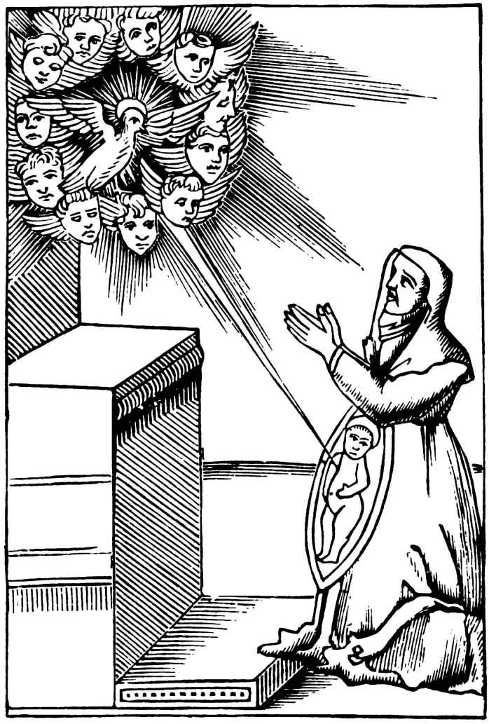 [169]《浮士德》,第二部。那些天使在欺騙了魔鬼之後,就把浮士德“不朽的部分”帶到了天堂。在更早的那個版本中,這是“浮士德的圓滿實現”(Faust's entelechy)。