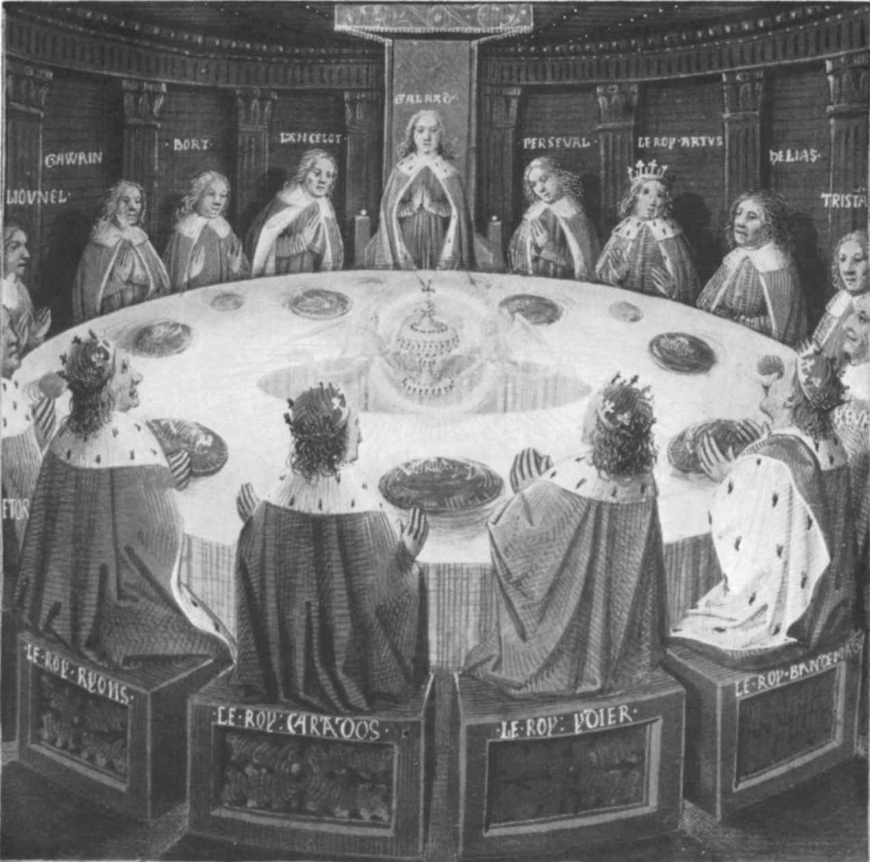 [199]曼荼羅的中心與印度蓮花的花萼相對應,是諸神的坐席和誕生地。它被稱為蓮花,具有女性的意義。在鍊金術中,器皿常常被理解為“孩子”發源之地的子宮。在聖母德敘禱文中,曾有三次把聖母瑪利亞稱為“器皿”[“妙神之器”(vas spirituale)、“榮耀之器”(honorabile)和“奉獻之器”(insigne devotionis)],在中世紀的詩歌中她被稱為“大海的花朵”並庇護著耶穌基督(參見第三十六個夢境)。聖盃(圖88)與赫爾墨斯的器皿密切相關。沃爾夫拉姆·馮·埃申巴赫(Wolfram von Eschenbach)把聖盃的石頭稱為“來自天空的石頭”(lapsit exillis)。維拉諾瓦的阿諾德(Arnold of Villanova)把哲人石稱為“lapis exilis”(2,xii,p.210),這對解釋沃爾夫拉姆的這個術語至關重要。