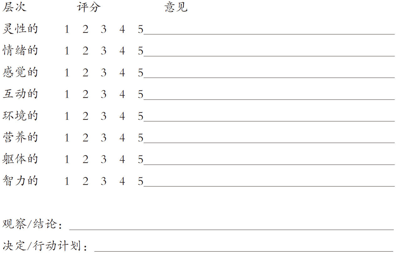 你也許會簡單地說“那要視情況而定”,並將它作為問題的最終答案。你也許會把這個練習當作是一次激動人心的探索,探討你為自己做的決策有多少,對自己感受的管理有多良好,以及你是怎樣激勵自己做出改變的。我們建議你將自己從這個練習當中獲得的洞察和學到的東西與其他人一起分享,這樣做可以幫助你整合自己的體驗。我們同樣建議你邀請一兩個朋友來做這一練習,並與他們一起分享所得到的體驗、意識、想法和感受。