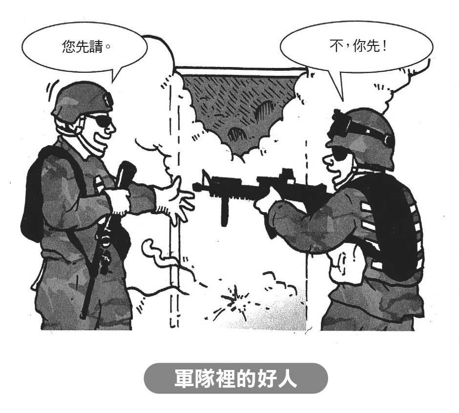 軍事領導在我的想像中,通常是冷酷無情的軍官大聲發號施令、要求下屬遵命。令我吃驚的是在軍隊中最佳領袖和普通領袖的最大分野,竟然也是EQ,這點實在很有意思。最佳軍事將領基本上就是能相處愉快的好人。有趣的是,巴赫曼的研究題目就叫做「好人致勝」。