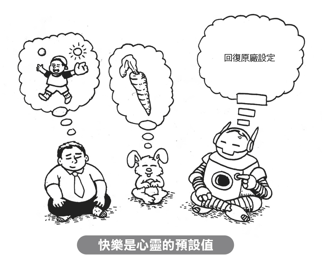 我自己的經驗和馬修很像。小的時候,我自然就是不快樂,如果沒什麼好事發生,我自然而然就是不快樂。現在則恰恰相反:如果沒特別的壞事發生,我自然而然就是快樂,我開心到我在Google的職位頭銜就是「開心一哥」。我們都有一個快樂的設定點,當開心狂喜或難過苦惱的感覺逐漸消退時,就會回到這個設定點。很多人認為這個設定點是固定不變的,但從我個人和馬修等其他人的經驗看來,這個設定點是能靠刻意訓練來改變的。