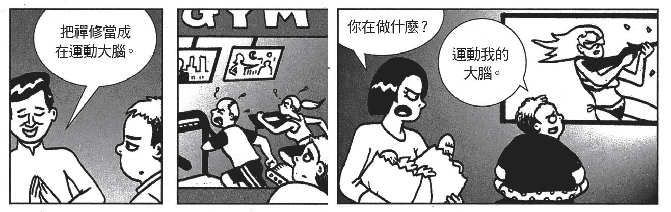 我開玩笑說,禪修就像是在健身房揮灑汗水,不過不用流汗,也不用健身房。
