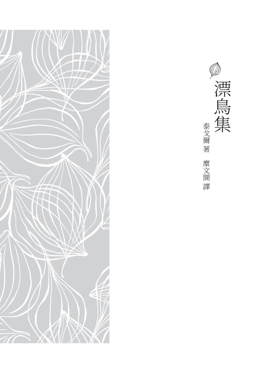 可是書名應該怎樣譯法呢?鄭譯「飛鳥」固不妥貼,一般譯作「迷鳥」更不適切,如譯「偶來的鳥」又嫌用字太拙,我擬譯為「漂鳥」,但不知是否貼切,我便設法找孟加拉文原作來研究,但他孟加拉文著作的書目中,沒有相當這本詩的書名,特地向幾位印度學者請教,他們也回答不出來,我看到他第二首詩便是嚮往於漂泊者的話,更想到古代印度學者修道的四階段,最後是雲遊期,尚在林棲期之後,而印度兩大史詩至今尚有流浪詩人挨戶來歌唱。可知印人對雲遊的重視,對漂泊者的尊敬了。這書第一首以漂鳥象徵經過森林裡修道後的雲遊者確甚適切,再經查動物學書,知唱歌的鶯類,便是漂鳥之一種,與詩句完全符合,於是決定譯作「漂鳥」。我把我這個意見告訴印度朋友,也獲得好些人的讚許。