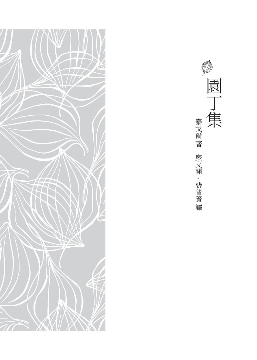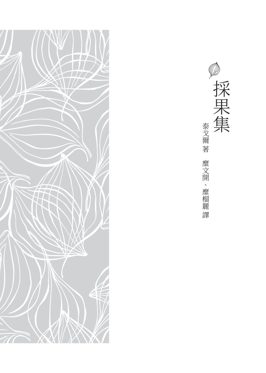 泰戈爾詩集 叢 書:經典文學 作 者:泰戈爾 譯 者:糜文開、裴普賢、糜榴麗 發 出 地 址:臺北市復興北路386號(復北門市) 臺北市重慶南路一段61號(重南門市) 電 話:(02)2500-6600