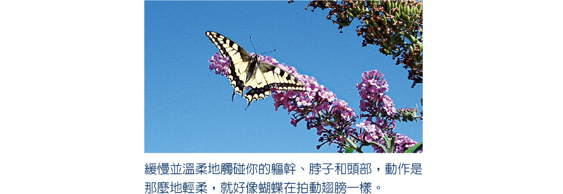 - 透過溫柔的觸碰,而非粗魯的操弄,達到放鬆的效果。