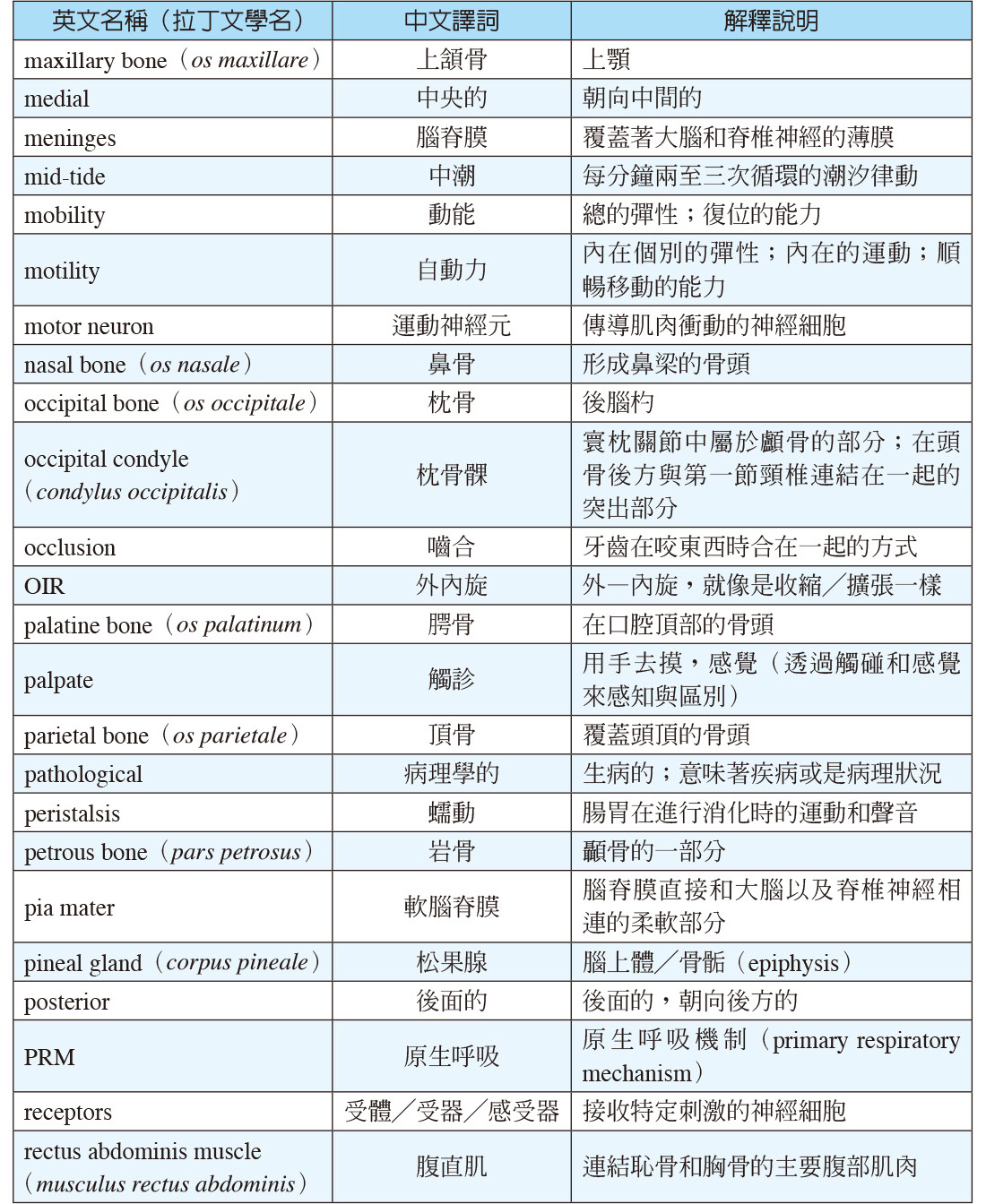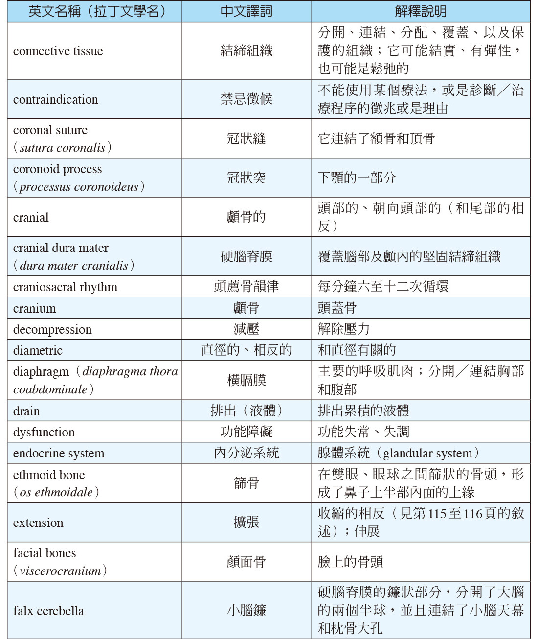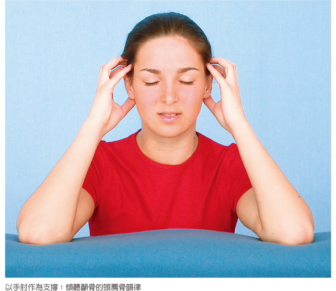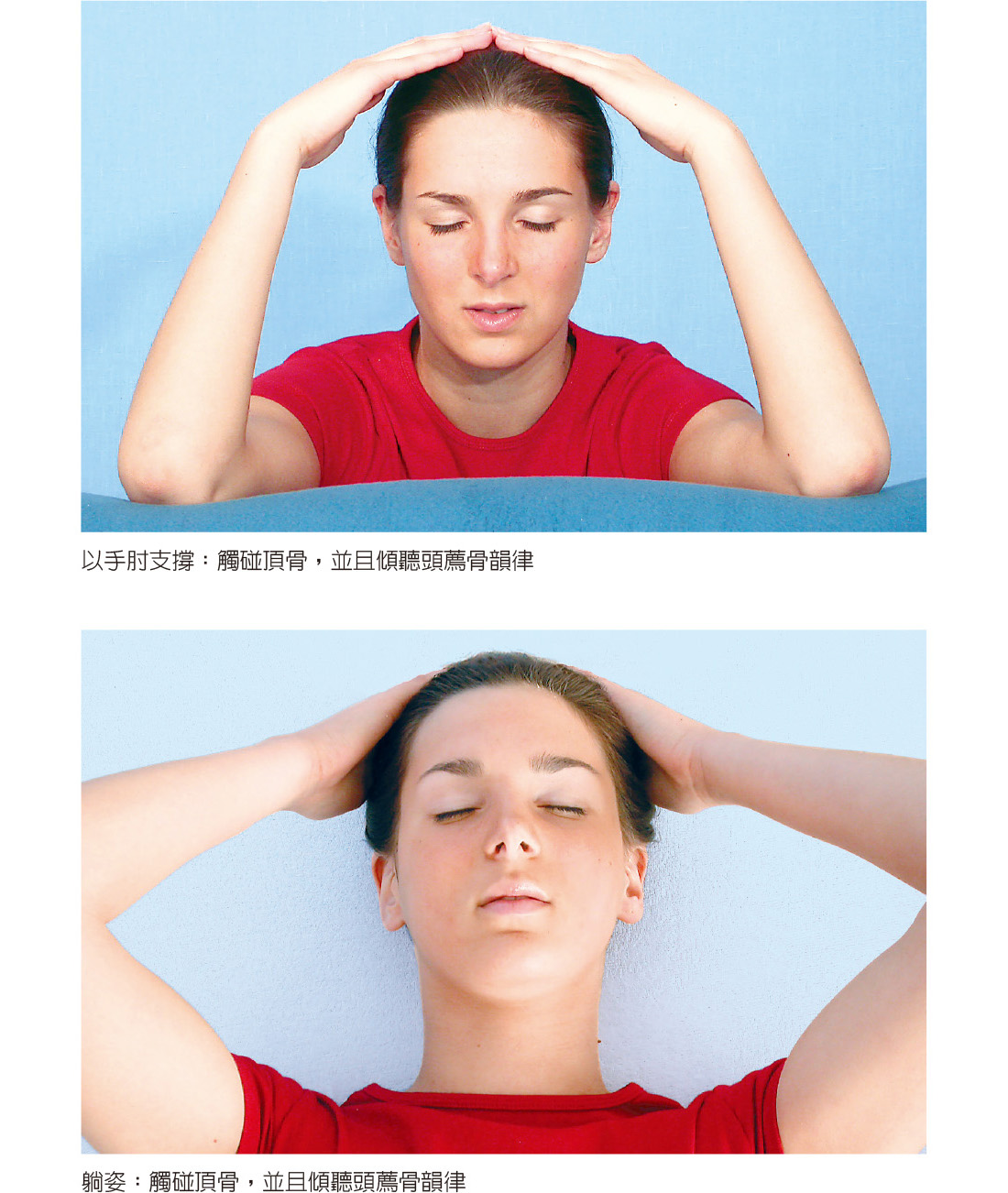 為了幫助你將這些練習更完整的予以視覺化,你可以在本書的第三階段,找到關於頭薦骨系統,尤其是頭骨,詳細的圖示及照片。