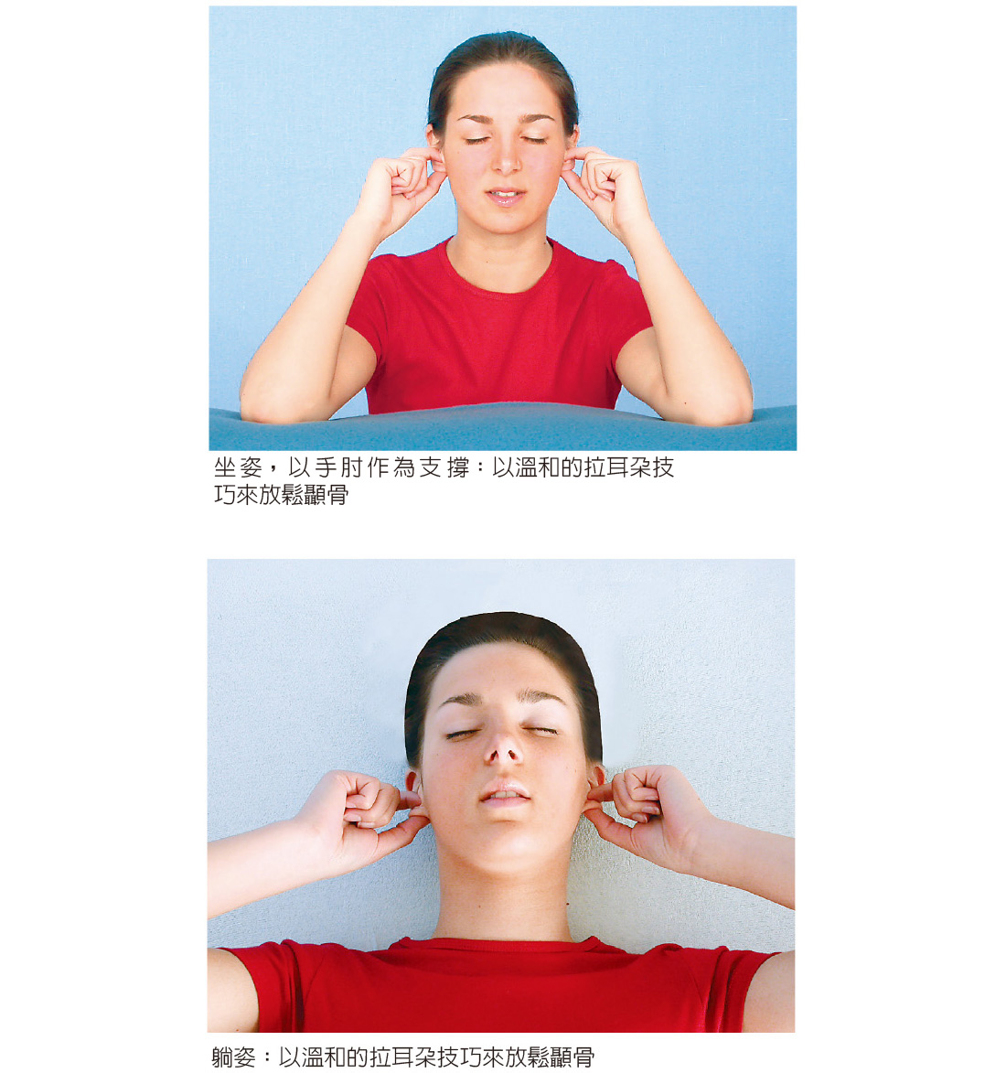 步驟12 以溫和的拉耳朵技巧放鬆顳骨