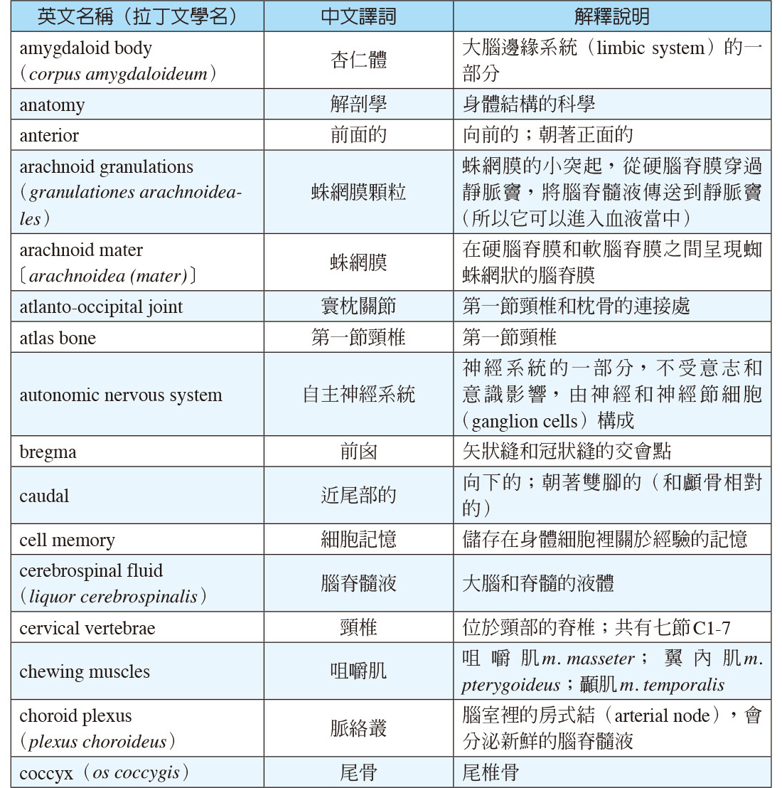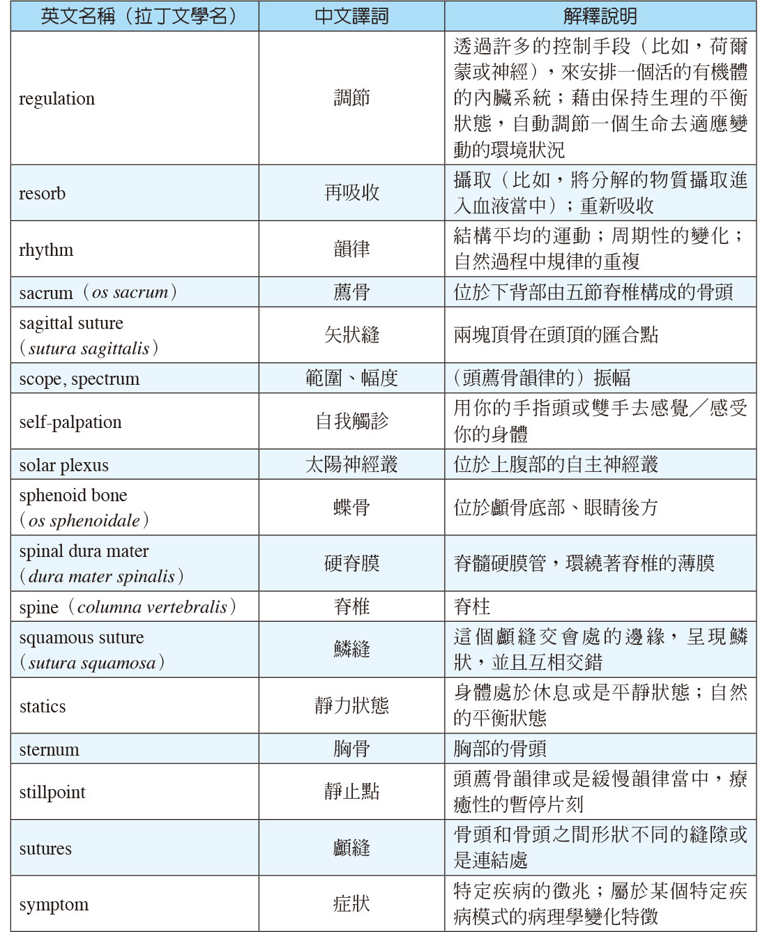這本書的重點在於把意念(注意力)帶到身體,以及強化身體覺察的練習。此外,還有一些讓我們可以自行療癒頭薦骨系統的簡單方法。我無意在這本書中詳細地介紹頭薦骨系統和頭薦骨療法,如果你對此有興趣,可以看我寫的另外一本書《頭薦骨韻律:一種溫柔的身體療癒》,或是參考其他專門的文獻,書末的「附錄3」也有一些推薦書目。