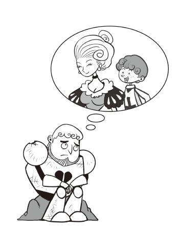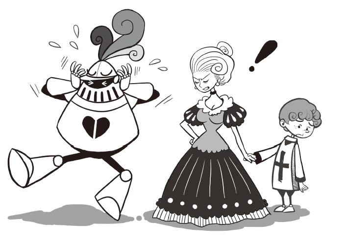 這對於騎士來說是個突如其來的打擊。他不想朱麗葉離開他。他是真心愛朱麗葉和他們的兒子,真的喜歡他們現在的家。另外,他也鍾愛自己的盔甲,因為這套盔甲讓大家知道他是誰—一位正義、善良有又愛心的騎士。為什麼朱麗葉就看不到他的這些優點呢?