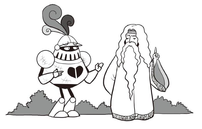 “怎麼回事兒啊?為什麼梅林法師不來幫我?”騎士一邊驚慌失措地說,一邊躲閃開大怪龍噴出的一束藍色火焰。