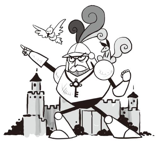 騎士感到進退兩難。現在的情況是三比一。或者說是兩隻動物加上半個騎士對剩下的半個騎士,因為代表一半騎士的山姆站在小松鼠和鴿子那邊,然而另一半騎士卻不想再繼續前進了。