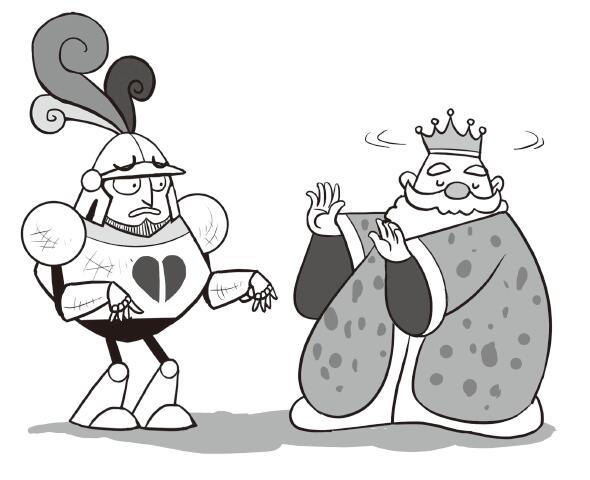 “你好,樂樂口袋,”騎士說道,“我是來向國王道別的。”
