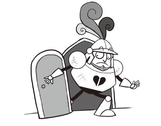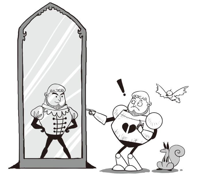 騎士焦慮地來回踱步。怎麼會這樣呢?頭盔卡住不動情有可原,因為他已經好幾年沒有摘下過頭盔了,但是這與面罩無關啊。他每天都掀起面罩吃飯喝水。為什麼現在面罩紋絲不動呢?就在今天早上,他還掀起面罩來飽餐了一頓炒蛋和烤乳豬呢。