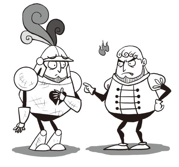 騎士平時倒是喜歡和鐵匠開開玩笑,但是這次可不一樣,騎士瞪起了眼。“我現在沒心情和你開玩笑,”騎士大聲說,“我的頭盔摘不下來了。”騎士一邊說,一邊氣憤地跺他那像是穿了大鐵鞋的腳。一個不留神,他的大腳不偏不倚地踩在了鐵匠的大腳趾上。