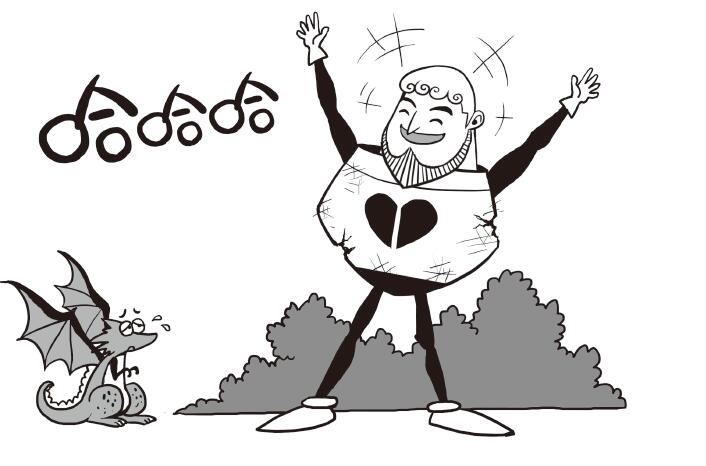 大怪龍向著騎士一次接一次地噴出熊熊燃燒的火焰,卻徒勞無用。騎士繼續邁步前進,大怪龍越變越小,最後變得像一隻青蛙那麼大。噴不出火焰的“青蛙龍”吐出了幾粒種子。這些種子是疑惑之籽,一樣沒能阻止騎士前進的腳步。技窮的“青蛙龍”變得更小了。騎士振臂歡呼,慶祝勝利。