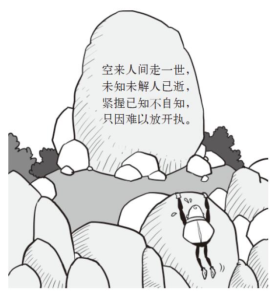 騎士深深地吸了一口氣,這樣可以幫助他理清思路。然後,騎士大聲地念出了後兩行字:“緊握已知不自知,只因難以放開執。”