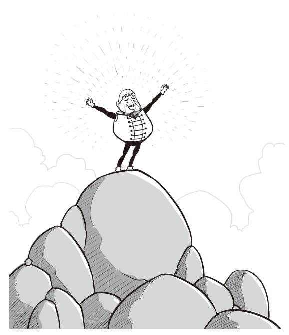 騎士手足並用,一寸一寸地向山頂爬去,他手指被石頭劃破了,沿路留下了斑斑點點的血跡。當騎士即將到達山頂的時候,前面的路上出現了一塊巨石。如騎士預料的一樣,巨石上刻著文字: