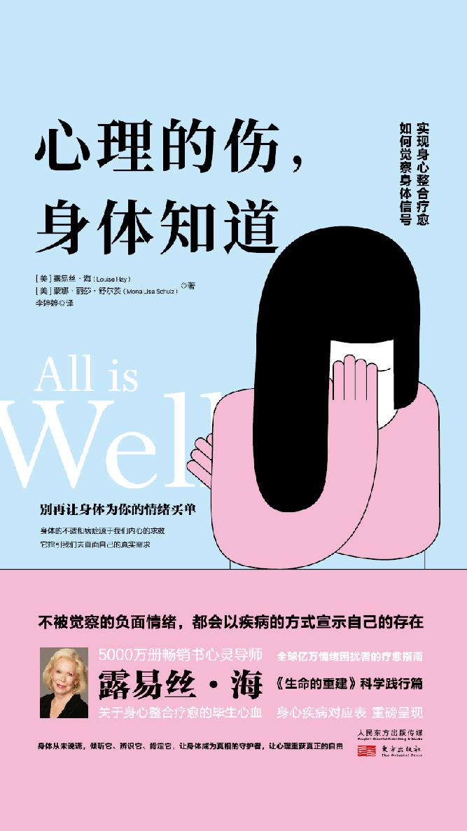 《心理的傷,身體知道》(All is Well)這本書簡直是太棒了,將露易絲·海(Louise Hay)的治療智慧與蒙娜·麗莎·舒爾茨(Mona Lisa Schulz)在健康方面的專長融合在一起。露易絲·海是研究人類意識共同體的領軍人物之一,也是積極思維的榜樣,為艾滋病患者和無數人開創了一條治癒之路,這本書是對她的直覺天賦的致敬。