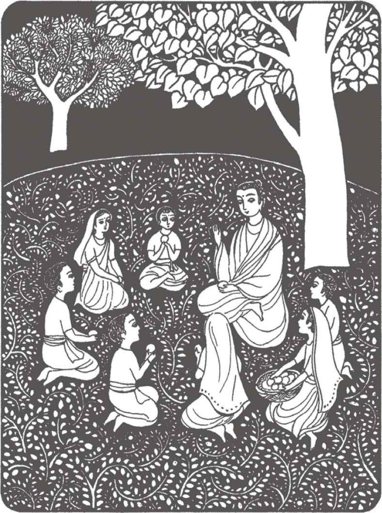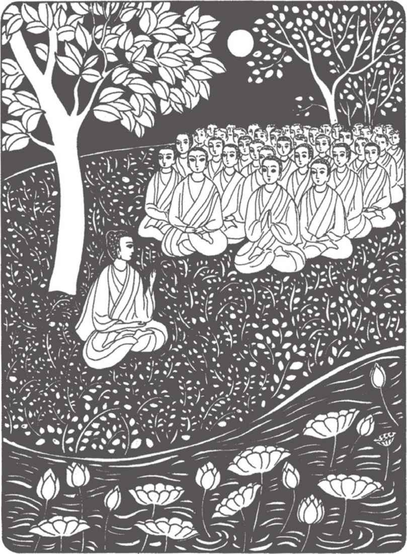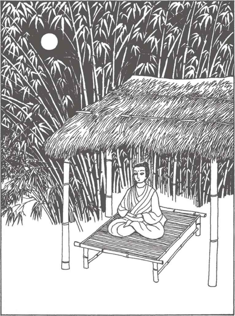 翠竹影下,年輕的比丘縛悉底跏趺而坐,全神專注於呼吸,不知不覺,一個多小時過去了。其他四百多位習禪者和縛悉底一樣,在偉大導師喬達摩的指導下,在竹林中或茅棚裡各自習禪,人人都親切地呼喚他們的導師為“佛陀”。